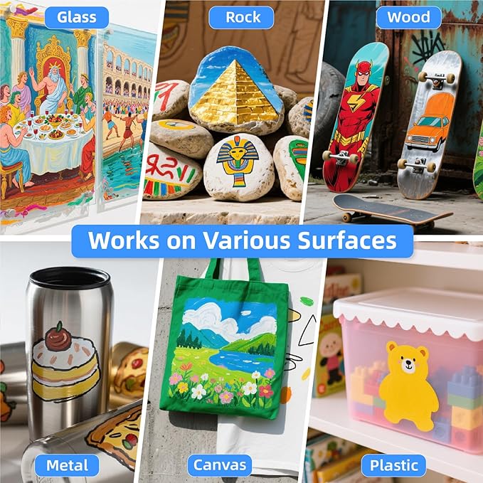 • 【Professional Performance】: Water-based ink certified ASTM D4236&EN-71;Non-Toxic,Waterproof and fade-resistant after drying; Opaque coverage even on dark materials; Suitable for artists; students and DIY crafts
