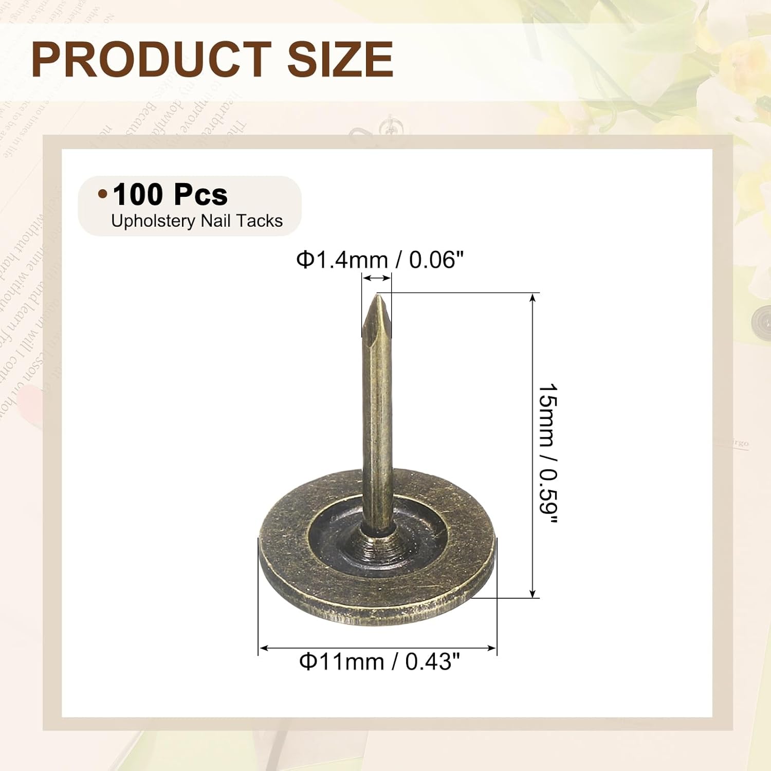 • [Size & Quantity] - The package comes with 100pcs decorative upholstery tacks. Sufficient quantity to meet your different daily needs. The overall size of upholstery nails is about 11mm x 15mm/0.43-inch x 0.59-inch(D*H)