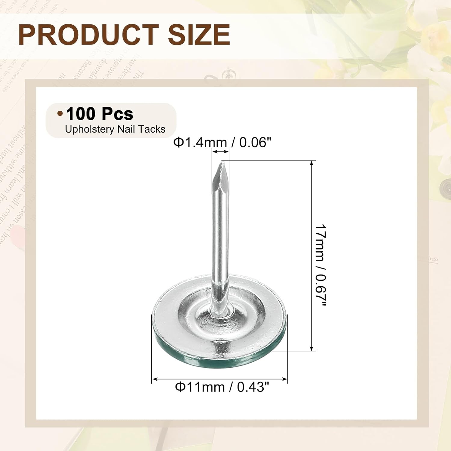 • [Size & Quantity] - The package comes with 100pcs decorative upholstery tacks. Sufficient quantity to meet your different daily needs. The overall size of upholstery nails is about 11mm x 17mm/0.43-inch x 0.67-inch(D*H)