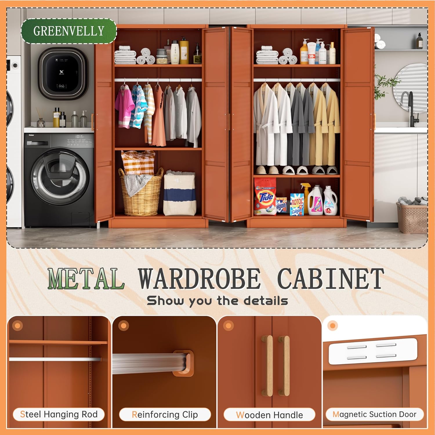 • Safe & Stable Wardrobe: Greenvelly Metal Armoire Cabinet Doors are equipped with 2 powerful magnetic closures to ensure that the doors close tightly and keep your belongings safe from dust. In addition, its well-designed anti-tipping system enables the steel wardrobe to be securely fixed to the wall, effectively preventing the possibility of accidental tipping.Metal storage cabinet can be used with confidence, especially for families with children.