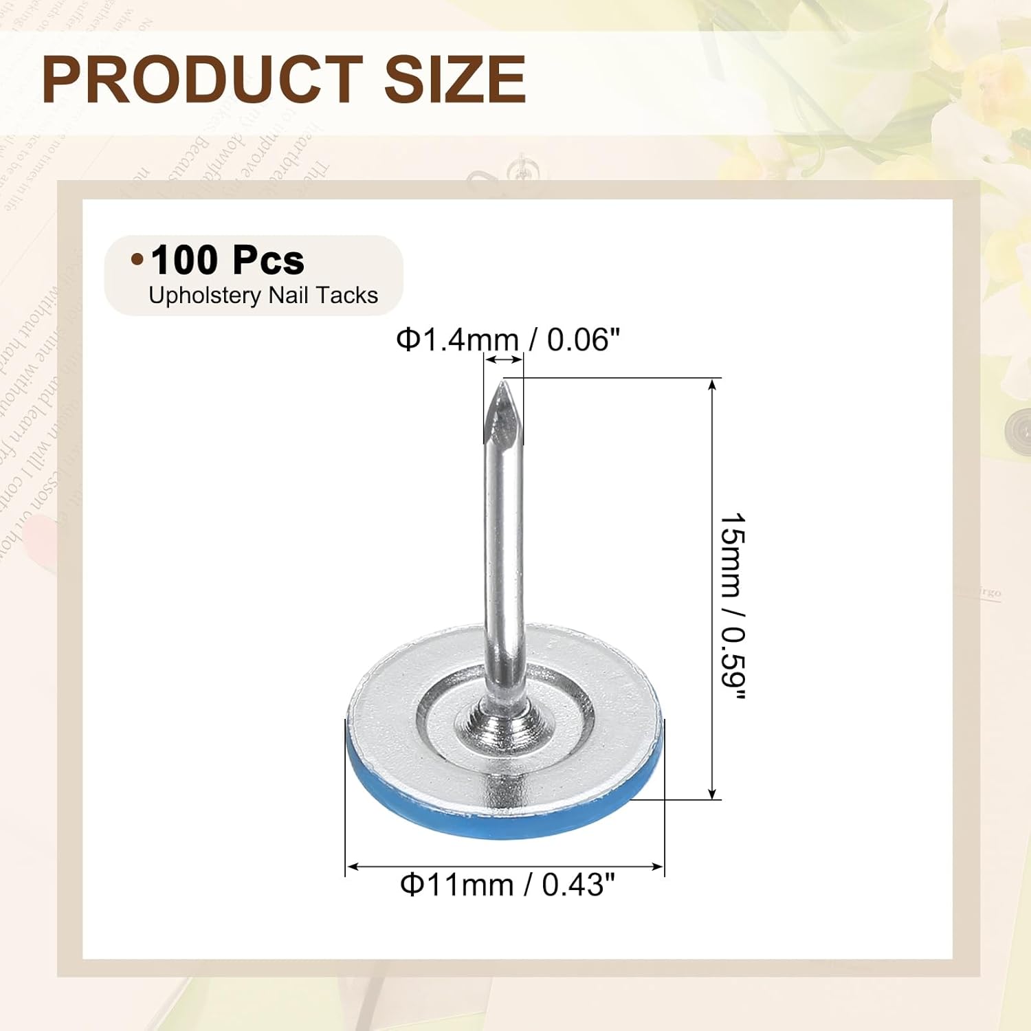 • [Size & Quantity] - The package comes with 100pcs decorative upholstery tacks. Sufficient quantity to meet your different daily needs. The overall size of upholstery nails is about 11mm x 15mm/0.43-inch x 0.59-inch(D*H)