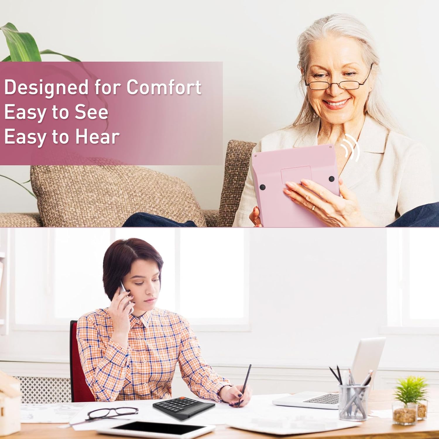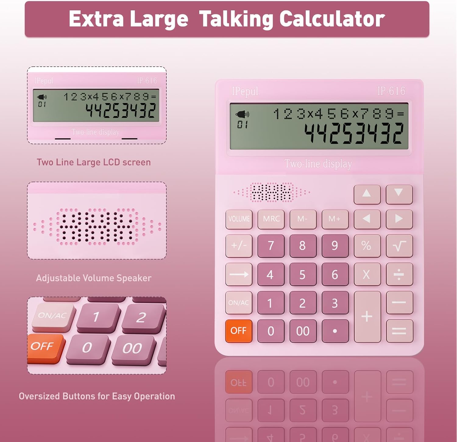 Calculators Desktop, Desk Calculator with Large 2 Line Display, Talking Basic Calculator with big Button & Adjustable Volume, 4 Function Calculators for Business, Students,School Office Supplies(Pink)