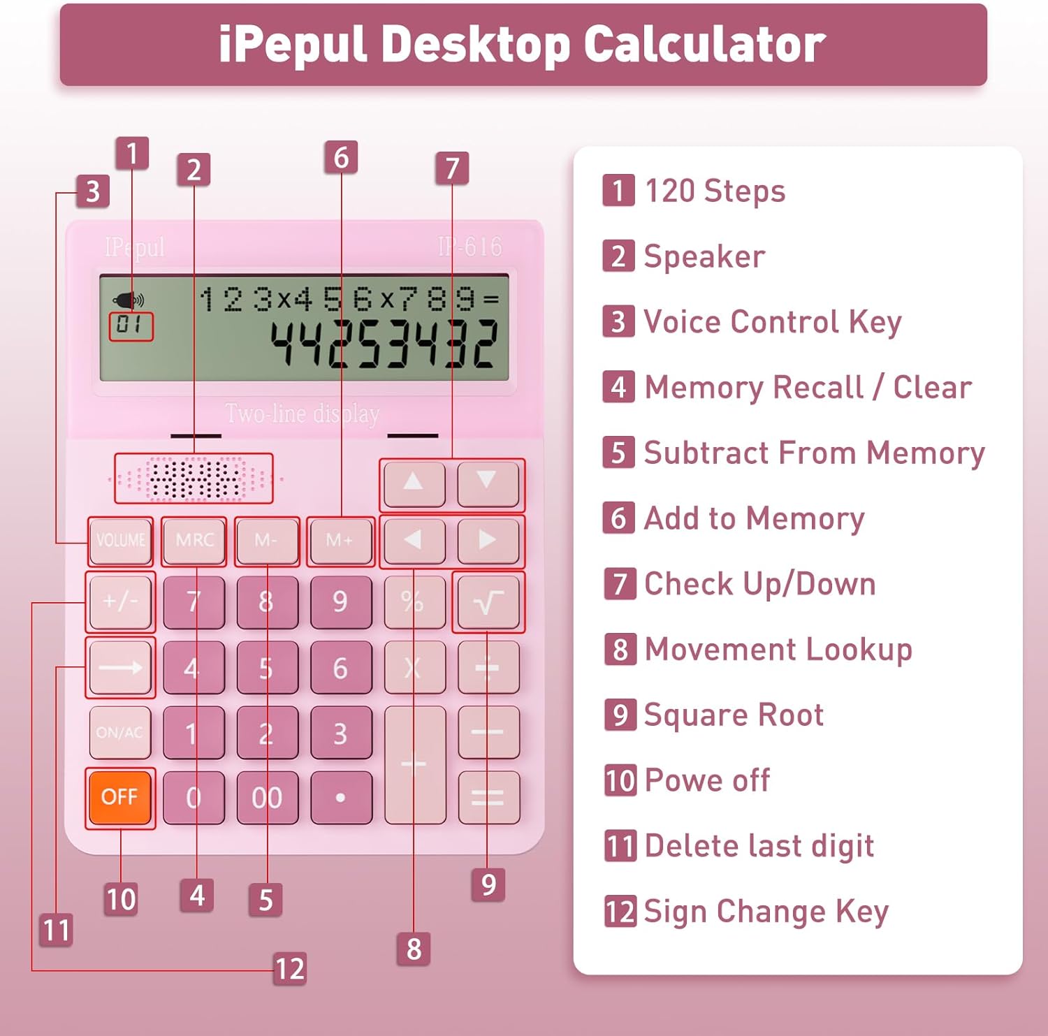 • 【Smart Voice Function – Adjustable Volume for All Users】Equipped with a voice broadcast function that clearly reads numbers and results. Adjustable volume settings (0–3) make this calculator ideal for quiet offices, students, and seniors,making this a truly thoughtful cute calculator for desk.