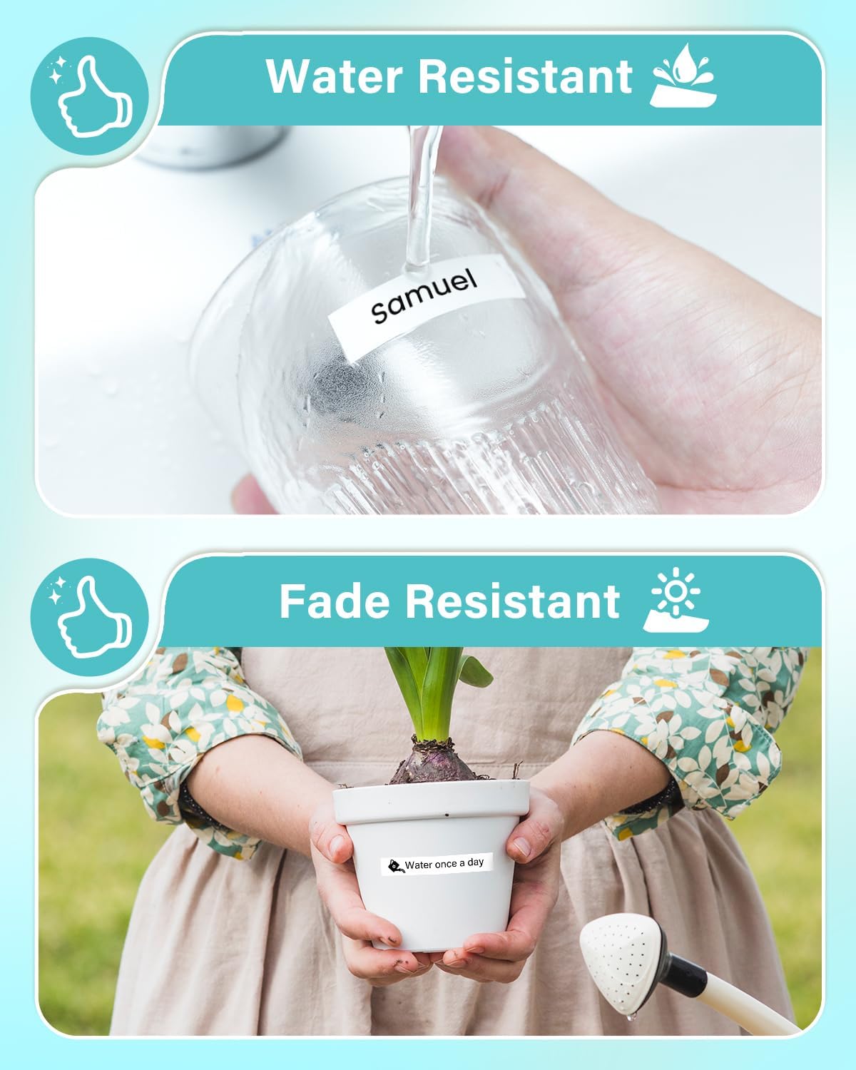 • Durable Laminated Ptouch tape: withstands water, fade, sunlight, and temperature-resistant (-30°C to 120°C) for long-lasting labels that stay well at indoor & outdoor