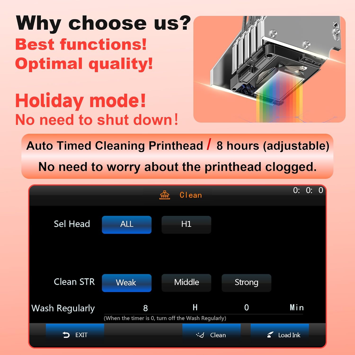 • ❤️❤️❤️Holiday Mode :The First automatic printhead timing cleaning system(free to adjust the timing),Say goodbye to print head blockages! ❤️❤️❤️Two Year Ink Supply : With your printer purchase, you’ll receive a two-year supply of ink— 5 bottles (250ml each) and 500g of powder! Get a new set every two months, and you only need to cover the shipping,Only within the US.