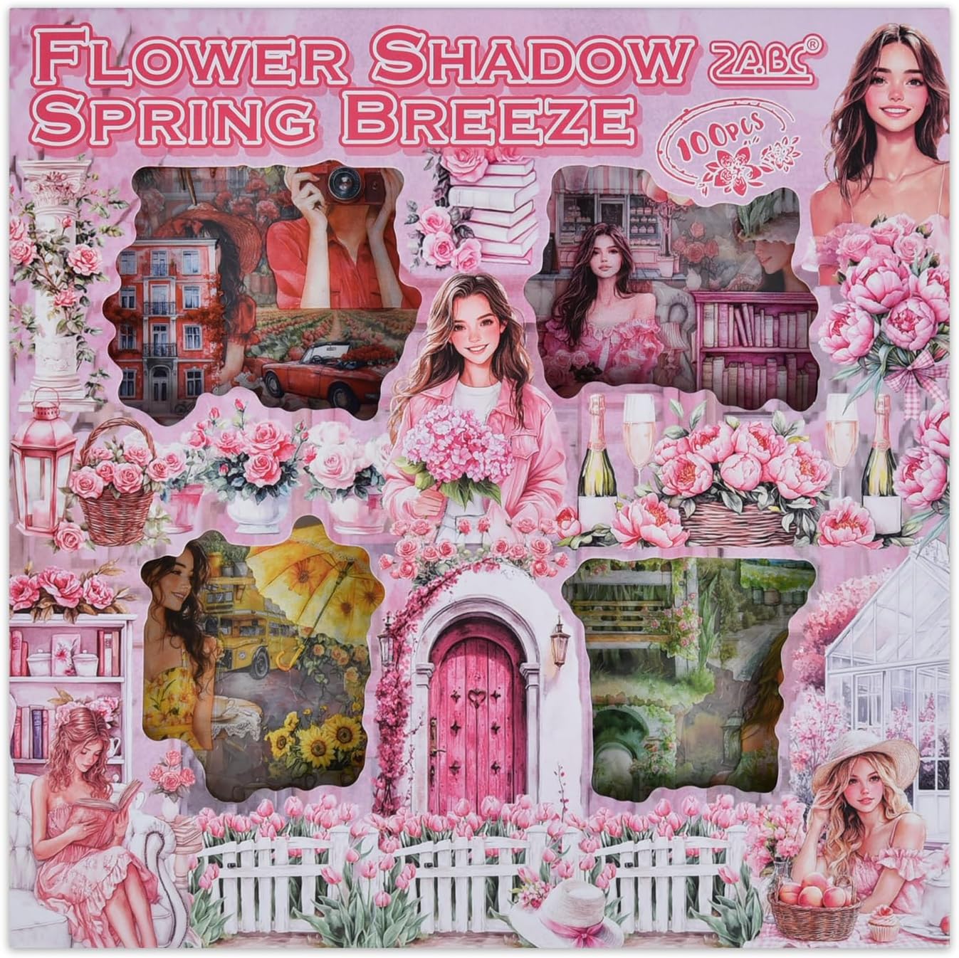 Retro Decorative Stickers 100 Sheets, Waterproof PET Girls Flowers Stickers for Scrapbooking Diary Planner DIY Craft Album Journal Notebook Laptop Phone Case Collection Gift Box