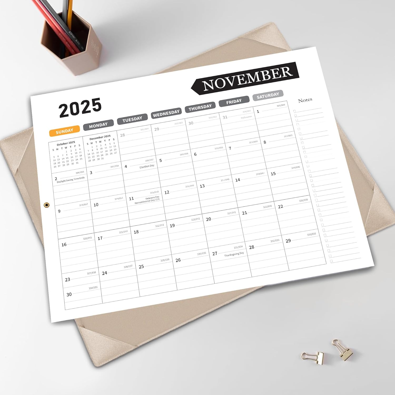 • 22" x 17"Oversized Calendar: Measuring 22" x 17", this desktop calendar provides ample space for writing down your daily tasks, agenda arrangement, and ideas without feeling cramped, The larger size also allows for better visibility of each day's events and notes