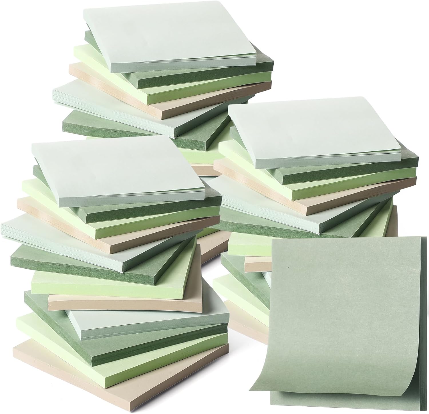 Thenshop 36 Pads Sticky Notes 3''x3'', Self Stick Notes Pads Office Supplies, 50 Sheets/pad Colored Aesthetic Sticky Accessories Home, Office, Notebook(Green)