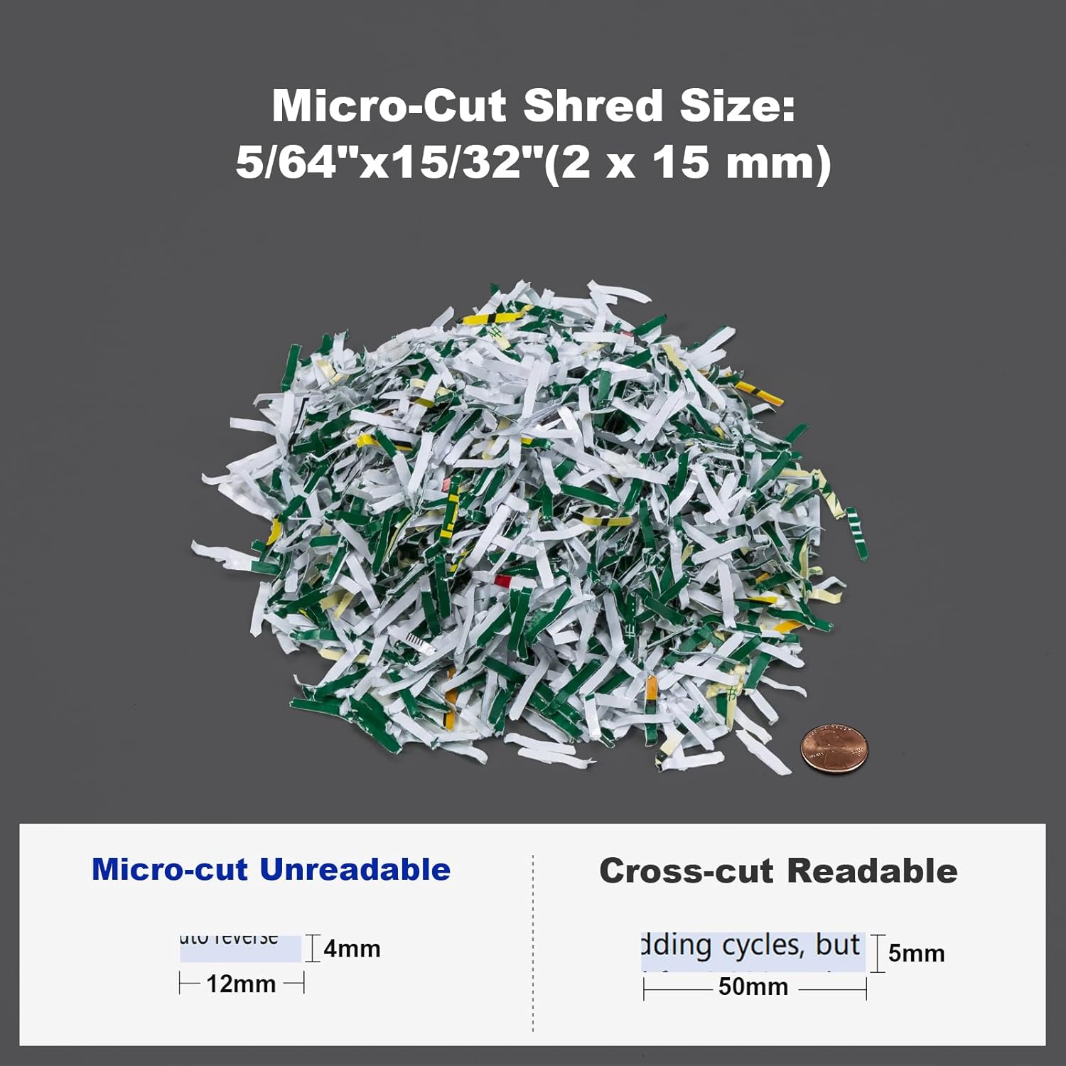 • 【P5 High-Security Shredding】Protect sensitive data with P5-level security, reducing documents to confetti-sized 2x15mm particles (5/64" x 19/32")—virtually unreadable and compliant with strict privacy standards.