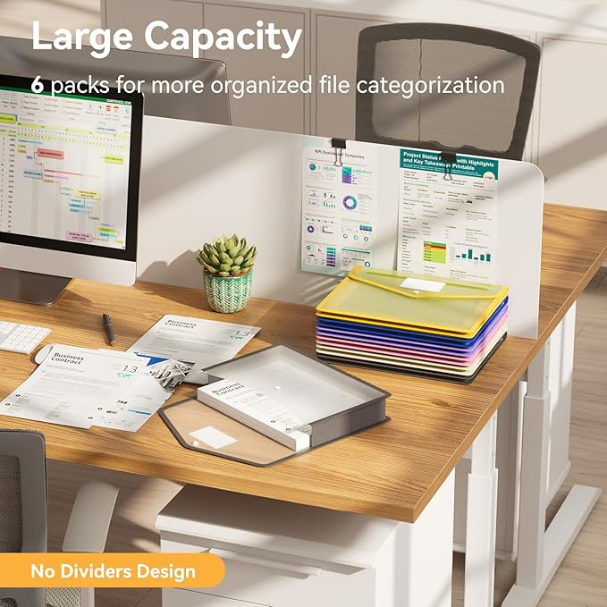 • 【Colorful Transparent Overflowing Document Folder】Six Pack Plastic Wallet Folder extra roomy at 12.7"×9.8", roomier than A4, with roomy expansion of 2.8" for a whopping 1000 sheets capacity. 6 concoction of vibrant colors: Blue,Yellow,Green,Black,Orange,Red, making categorizing a delightfully different experience.