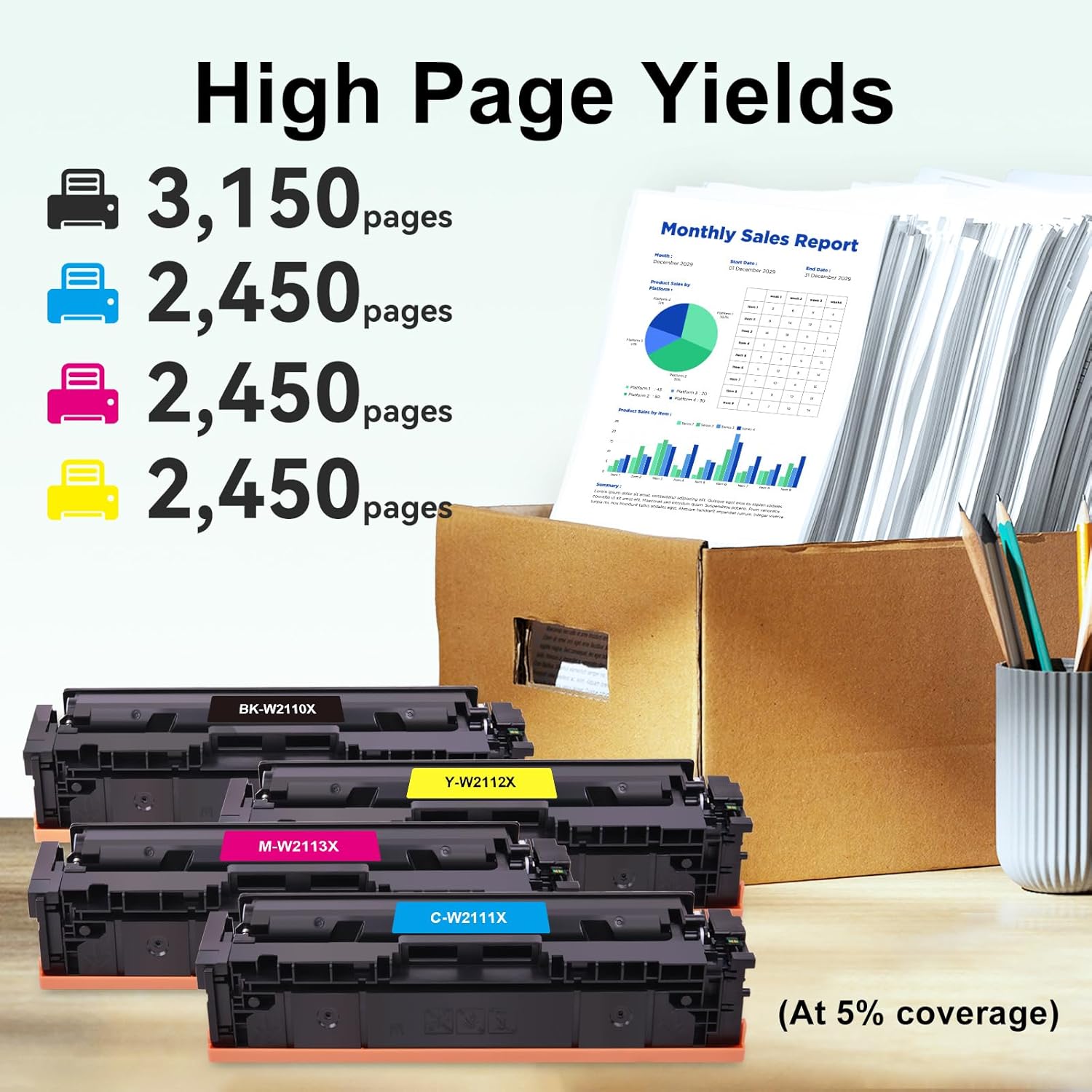• High Page Yields: SAILNER high yield 206x toner cartridges delivers up to 3150 pages per black and 2450 pages per color. It's your dependable partner for consistent, high-quality printing