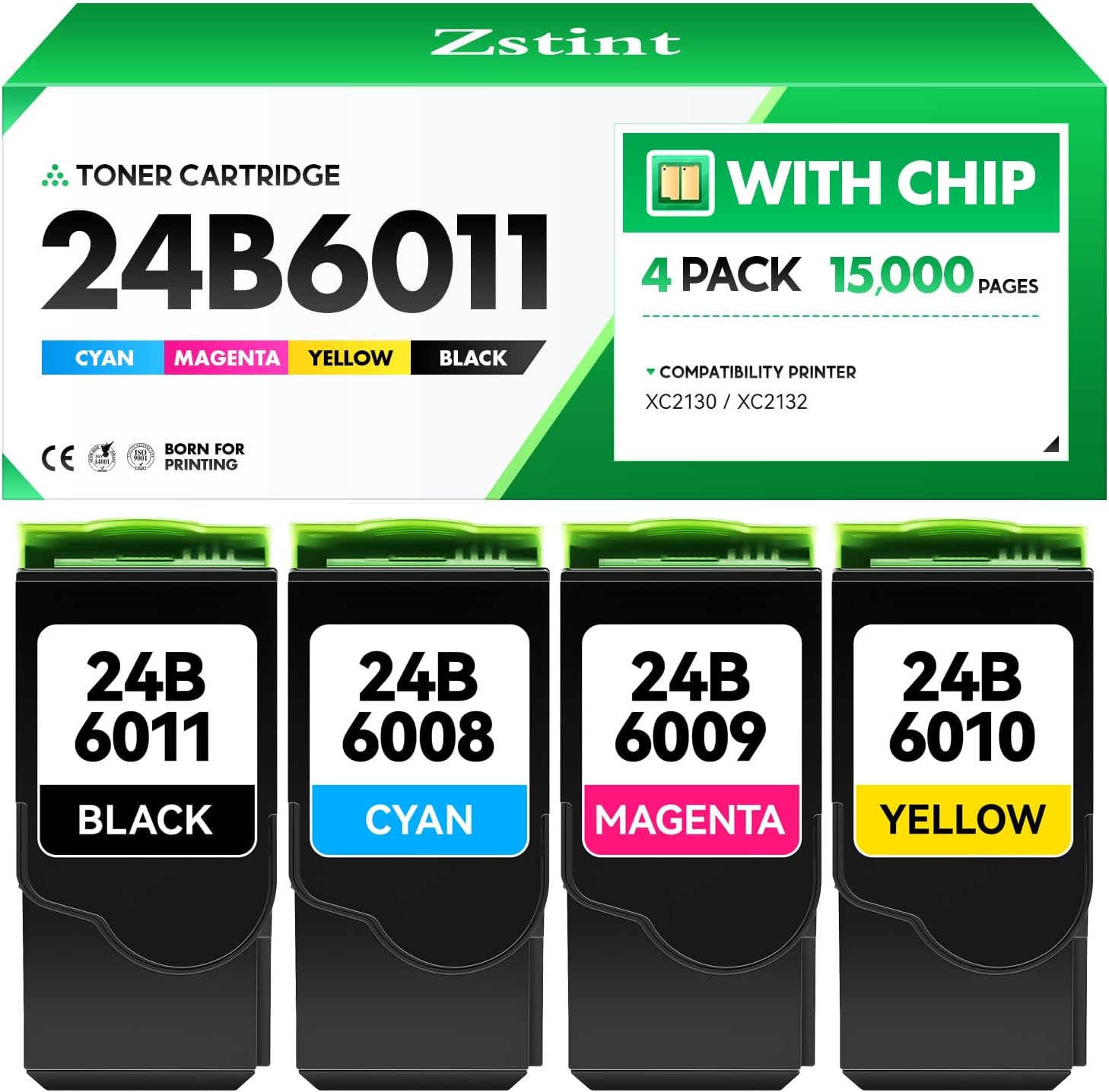 24B6011 24B6008 24B6009 24B6010 Toner Cartridge Set(4-Pack Black Cyan Magenta Yellow with chip) Replacement for XC2132 XC2130 Toner Compatible with Lexmark XC2132 XC2130 Laser Printer Ink All-in-One