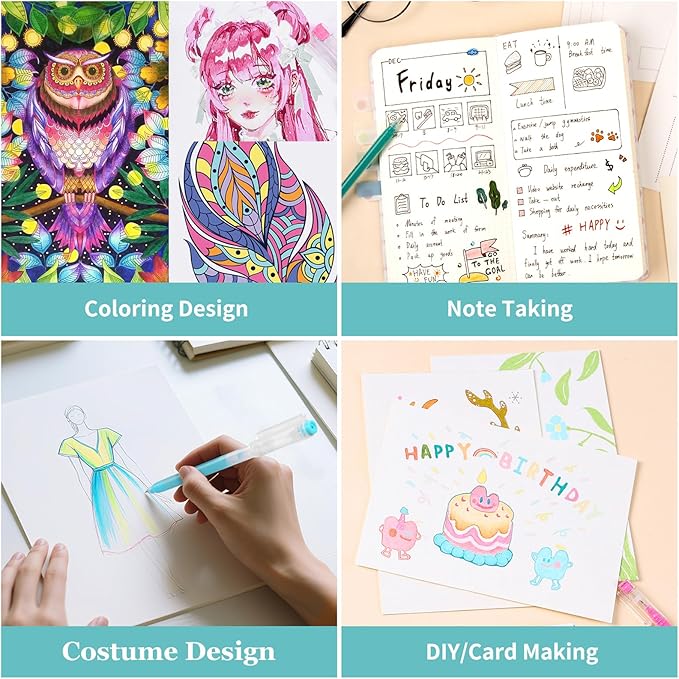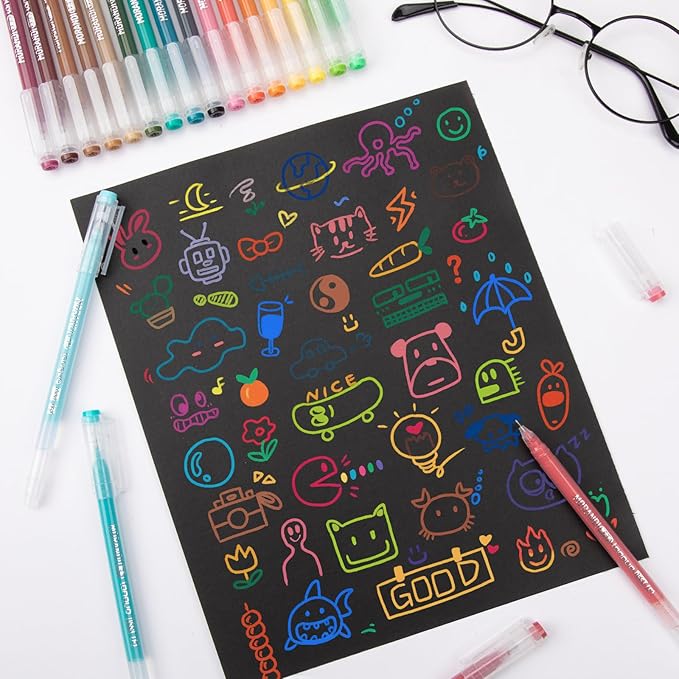 • 【 Multi-Purpose Usage】The gel pen set is an ideal art supply for adults and kids, perfect for coloring books, bullet journaling, sketching, drawing, writing, comics, and any other designs on Scrapbooks, School Projects, Party Invites, Greeting Cards, DIY Decor, Letters to Friends or Family.