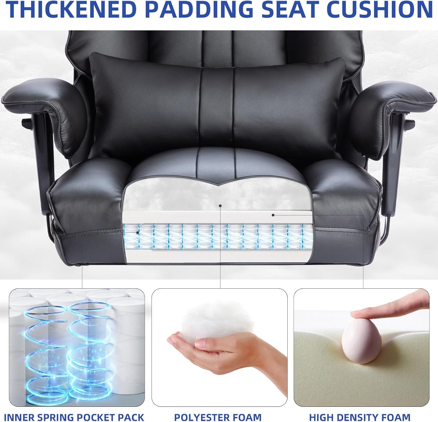 • 𝑪𝒐𝒎𝒇𝒐𝒓𝒕𝒂𝒃𝒍𝒆: Big and tall office chair features scratch-resistant PU leather. Task chair is easy to maintain. Big high back office chair filled with double-layer polyester foam and sponge seat and backrest provide unmatched comfort for all-day sitting.