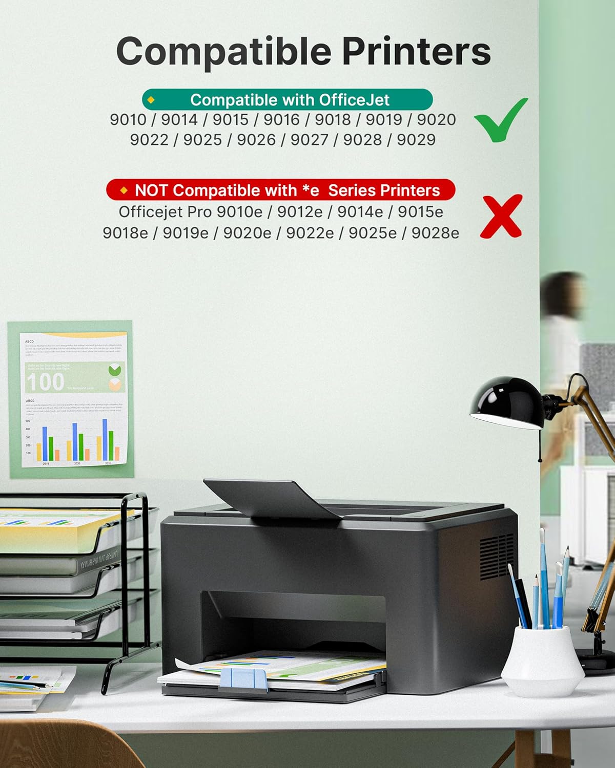 • Note: SHEENGO 962xl ink cartridges combo pack are Incompatible with *e Series Printers and with HP+ Service , Incompatible with OfficeJet Pro 9010e 9012e 9014e 9015e 9016e 9018e 9019e 9020e 9022e 9025e 9026e 9027e 9028e 9029e.