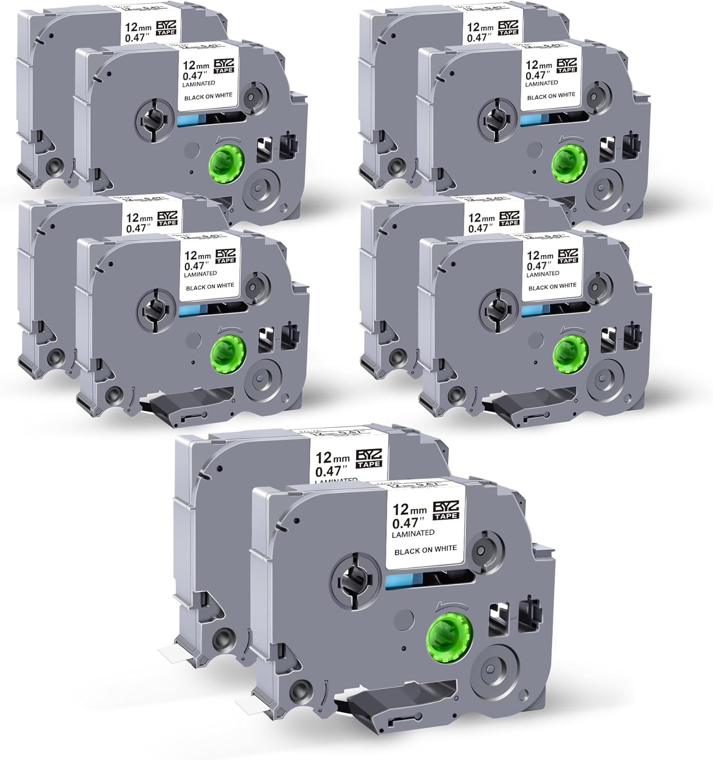 10 Pack Compatible Label Tape Replacement for Brother P Touch TZE-231 Tz231 Laminated Tape Black on White 12mm 0.47 inch x 26.2ft 8m 1/2 for Label Maker PTD400AD PTH110 PT-D210 PT-D400 PTD600 PTD220