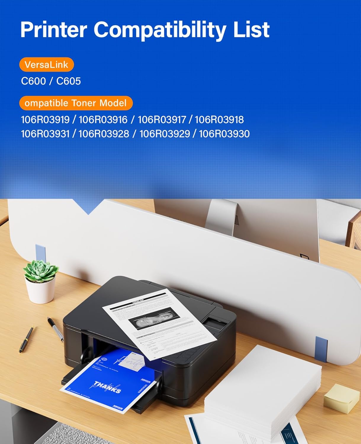 • Compatible Printer: Xerox VersaLink C600 C605 Printer Series; Compatible Toner Model:106R03919,106R03916, 106R03917,106R03918,106R03931,106R03928,106R03929,106R03930