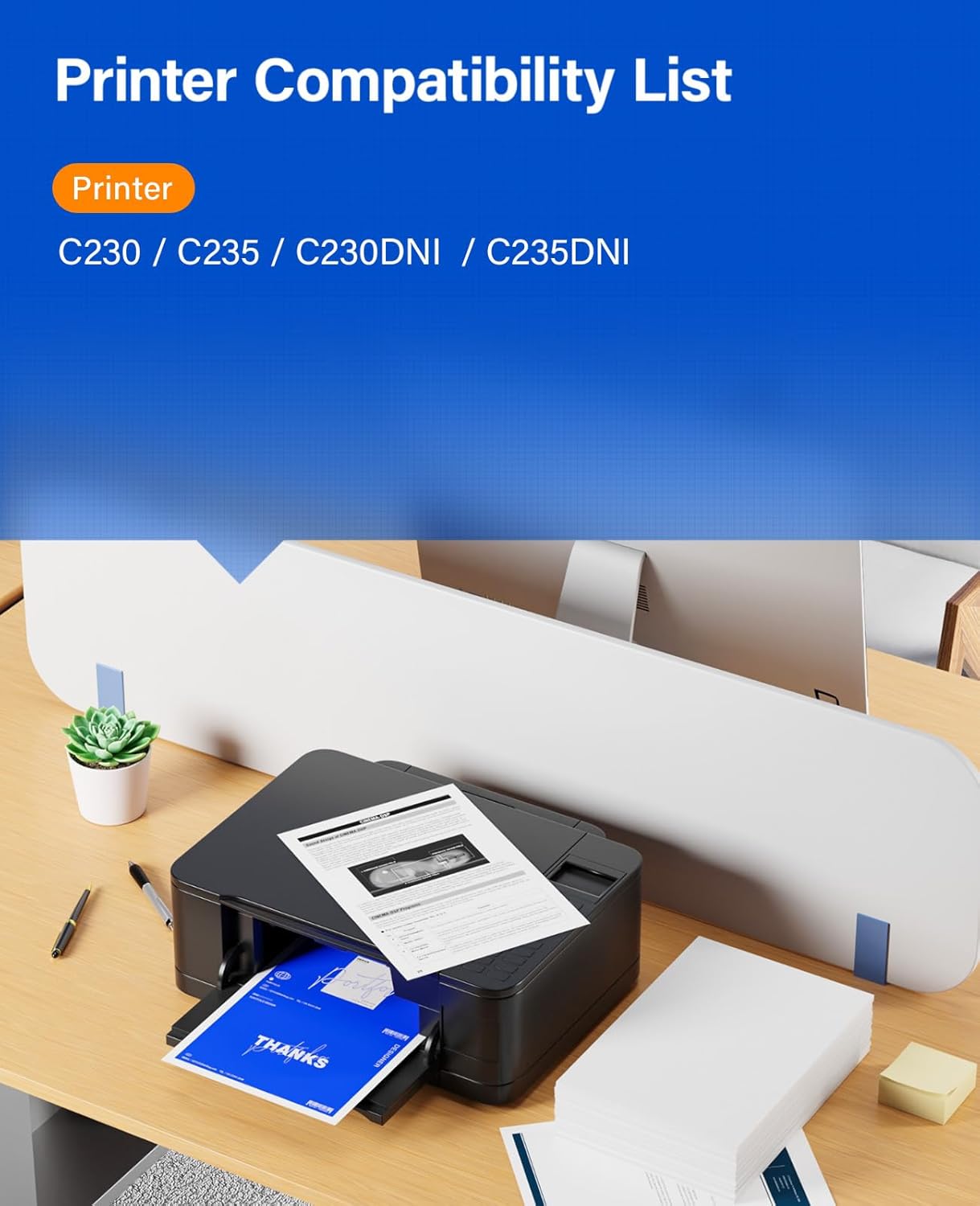 • 【High Quality】 C230/C235 Toner Cartridges with chip can be instantly identifed by your printers and work perfectly, making daily documents, reports, letters, graphics and photos very clear and bright.
