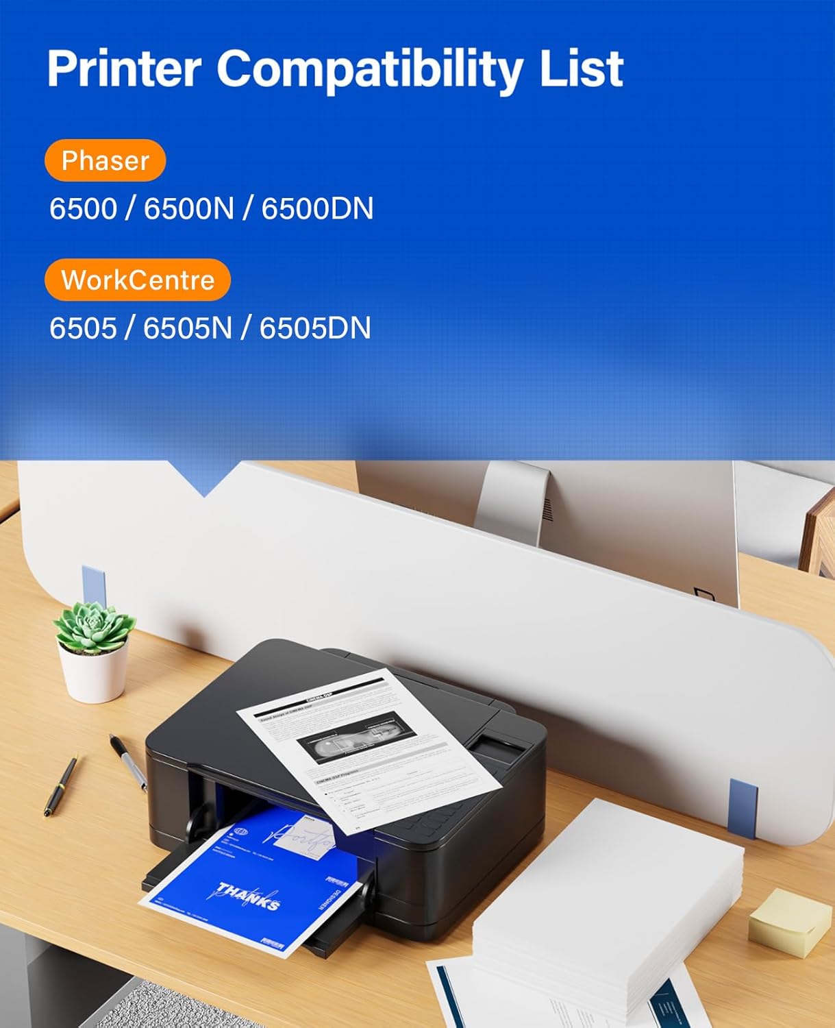 • Compatible Printer: Compatible with Xerox Phaser Series: 6500,6500N,6500DN, WorkCentre Series: 6505, 6505N, 6505DN Printer; Compatible Toner Model: 106R01597, 106R01594, 106R01595, 106R01596