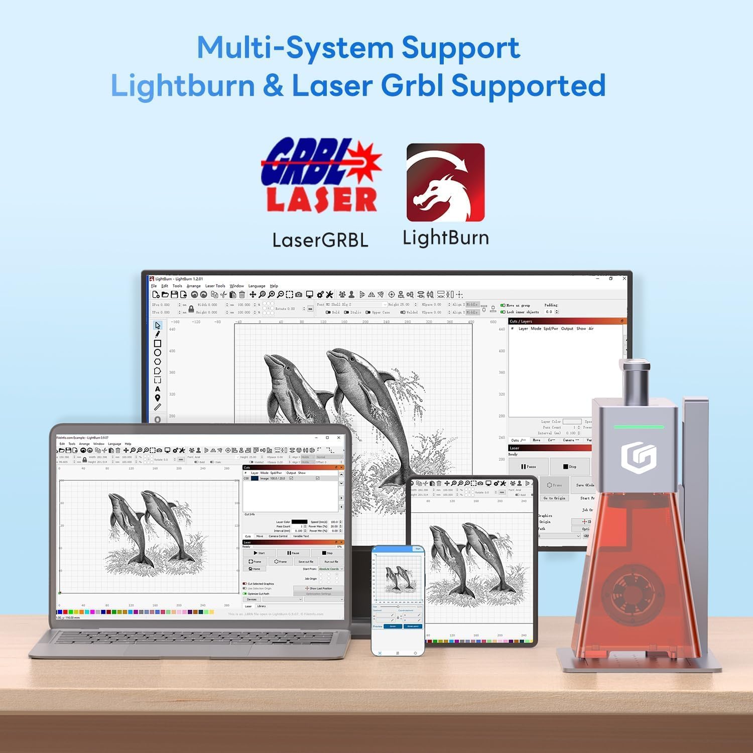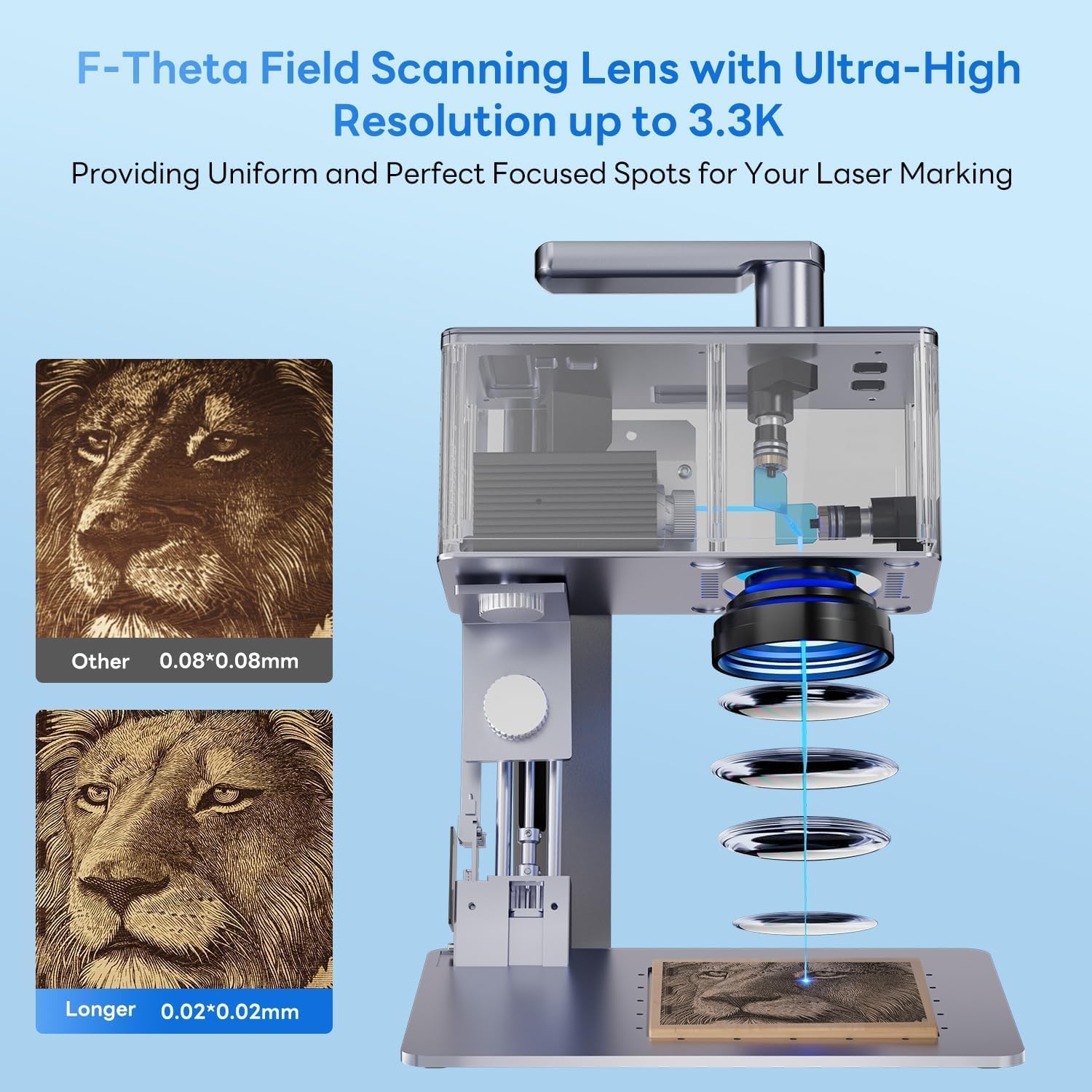 • 【Higher Accuracy and Speed】 The Nano Pro is equipped with industrial-grade field mirrors and optical correction, enhancing engraving quality and achieving precision up to 0.01*0.01mm. With the latest high-speed galvanometer technology, it offers a preview speed of up to 32,000mm/s and high-speed engraving capabilities of up to 5000mm/s