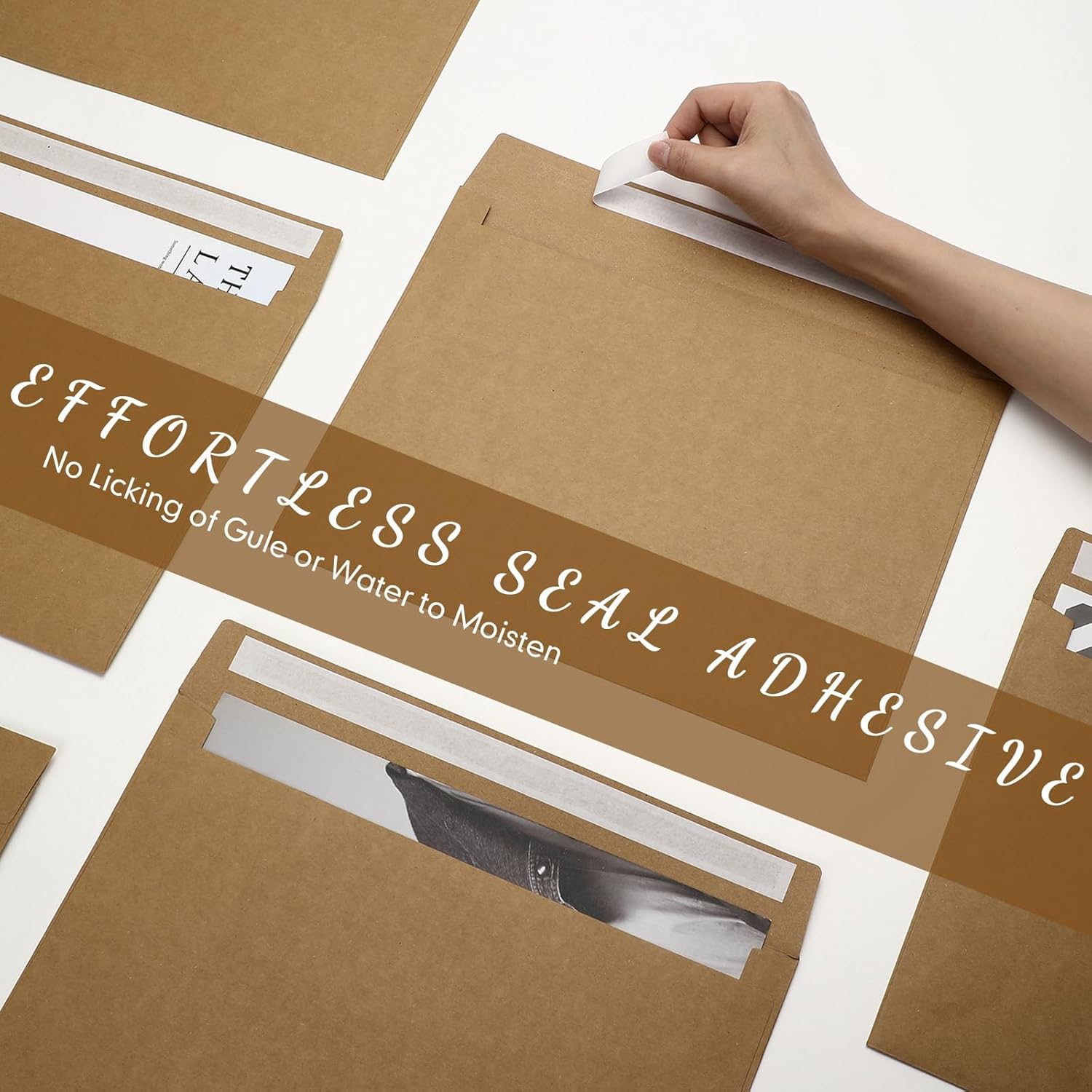 • Self Adhesive Design: our envelopes are equipped with separate tapes; Just tear up the protective strip, press and stick without needing water and glue, which is easy to apply; Catalog envelopes have good adhesion to prevent the contents from falling out during transiting