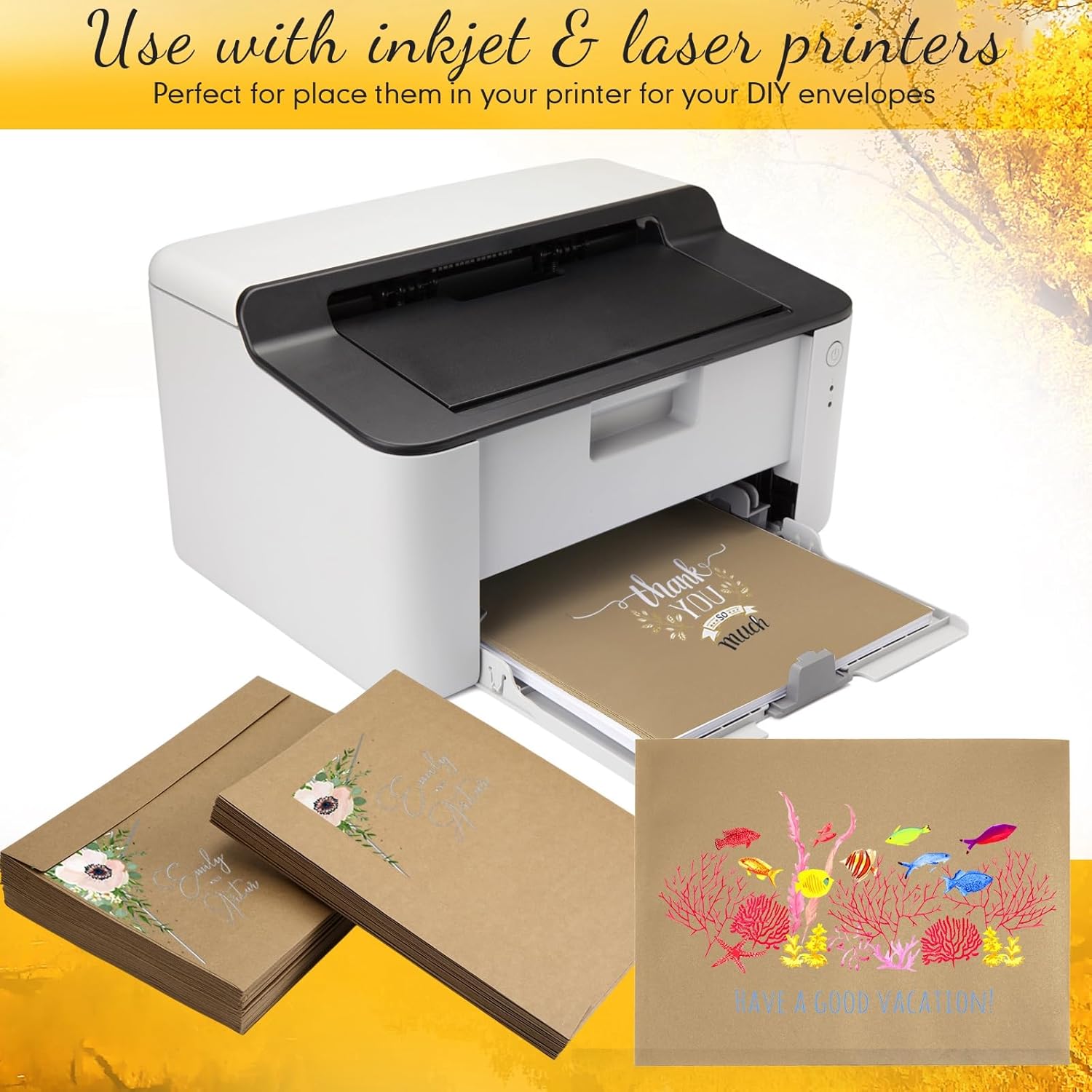 • Inkjet and Laser Printers: our booklet envelopes have a smooth surface, thickness and packed flat for laser printers and smudge free, suitable for customize or label your envelopes