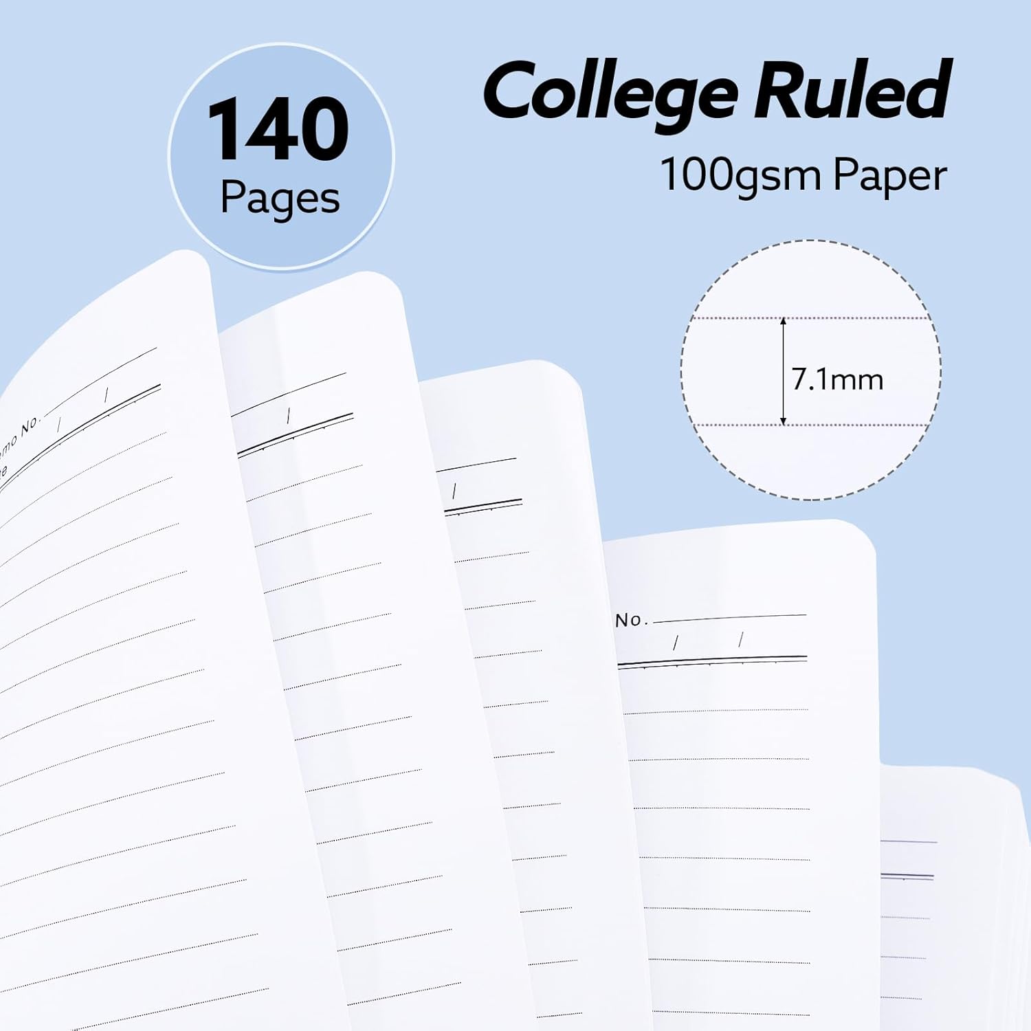 • 【100GSM Paper】The hard cover notebook is made of 100gsm thick paper, which prevents ink penetration and ghosting, providing a smooth writing experience. The inner pages are designed with 7.1mm college ruled to keep your notes neat and tidy