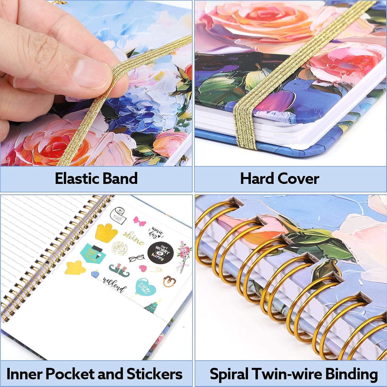 • 【Unique Designs】The 180° flat design makes your reading and writing easier. Elastic closure keeps the notebook closed when not in use, the back pocket is used to store invoices, cards, notes, etc., Unique cover pattern designes make your n