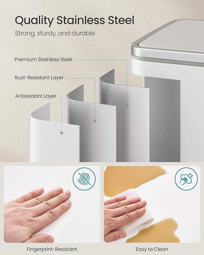 • Built to Last: Constructed from premium stainless steel, this trash can is resistant to both rust and fingerprints, ensuring its durability and long service life