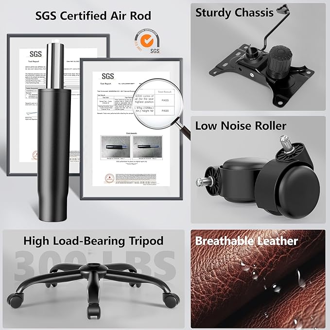 • Premium PU Leather:Crafted with high-quality PU leather that's easy to clean and built to last. This office desk chair features waterproof material with a smooth, breathable surface—perfect for your comfy office chair needs. Features high-density foam cushioning with natural leather grain for a premium executive look.