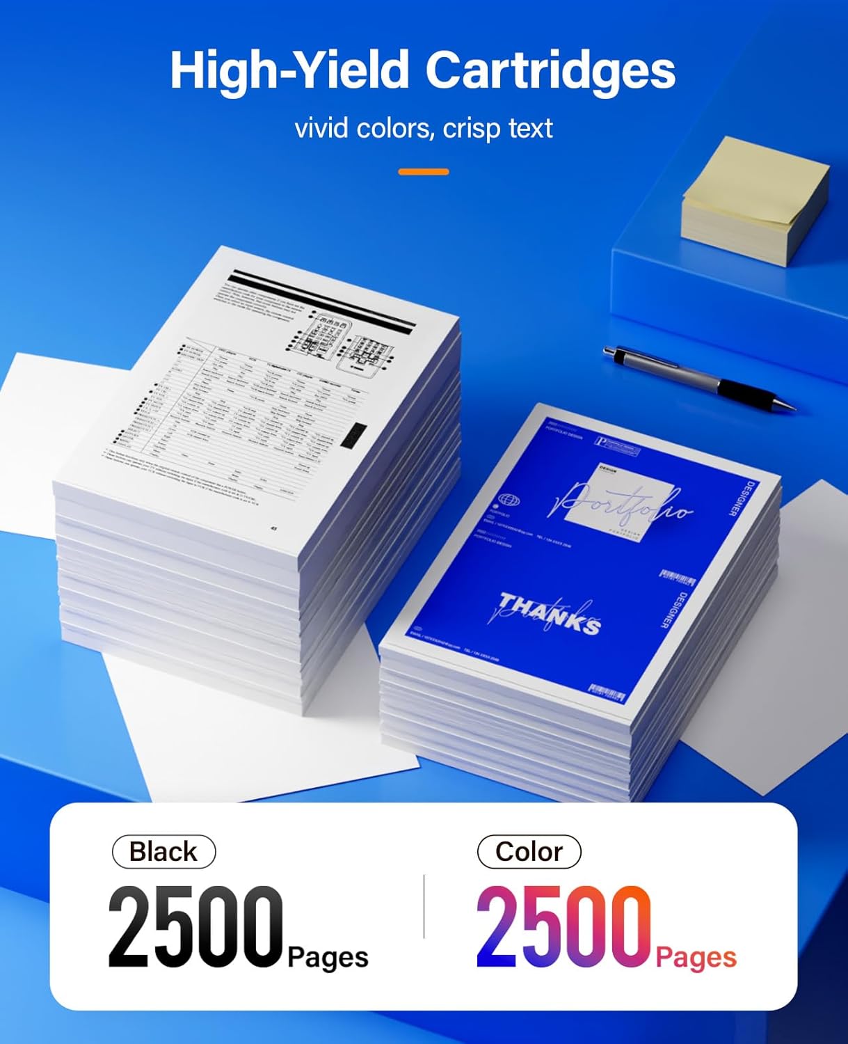 • Page Yield: Up to 2500 pages at 5% coverage (Letter/A4) per cartridge, (Based on 5% Coverage).