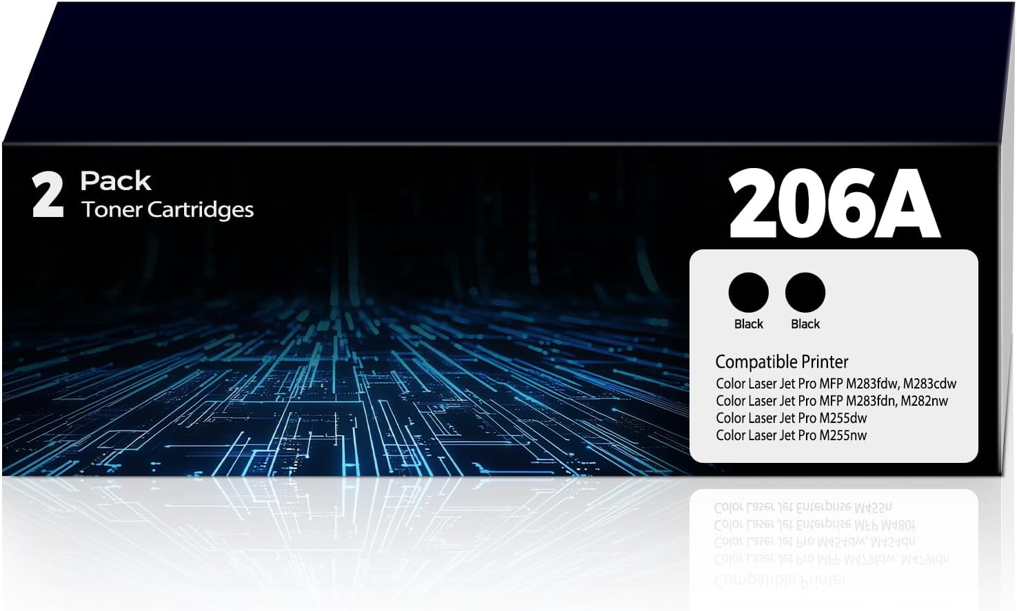 • Package Contents: 2 Packs 206A toner cartridges contain 2 x W2110A 206A black toner cartridge