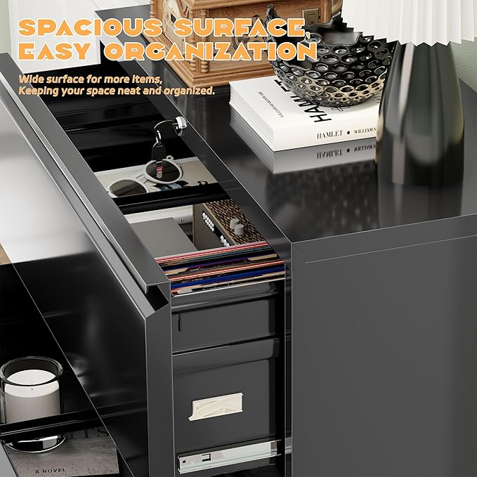• ❤ Smooth & Quiet Operation -- The black file cabinet have smooth rolling bearing drawers, the drawers open and close effortlessly without jamming or noise. The sound produced when pulling the drawer is below 20 dB, which can create a quiet working environment for you.