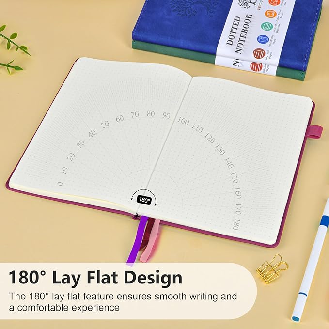 • 【160 PAGES PREMIUM DOTTED NOTEBOOK】:PERCUN A5 dotted journal features 160 pages of smooth, acid-free dotted grid paper (5.9” x 8.5”), ideal for bullet journaling, note-taking, sketching, and planning. The thick 100 GSM paper resists ghosting and bleed-through, ensuring your ideas stay crisp with pens, markers, or fountain inks.