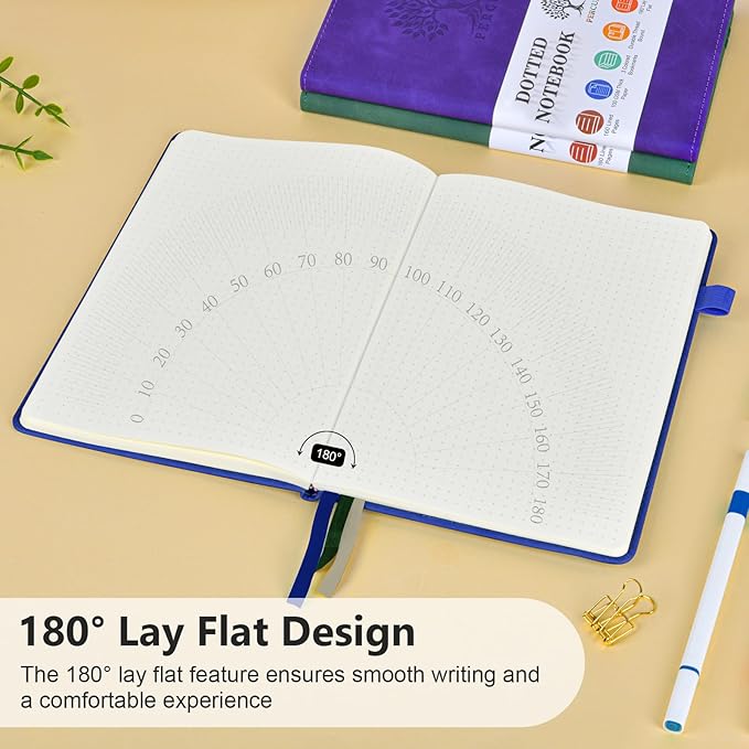 • 【160 PAGES PREMIUM DOTTED NOTEBOOK】:PERCUN A5 dotted journal features 160 pages of smooth, acid-free dotted grid paper (5.9” x 8.5”), ideal for bullet journaling, note-taking, sketching, and planning. The thick 100 GSM paper resists ghosting and bleed-through, ensuring your ideas stay crisp with pens, markers, or fountain inks.