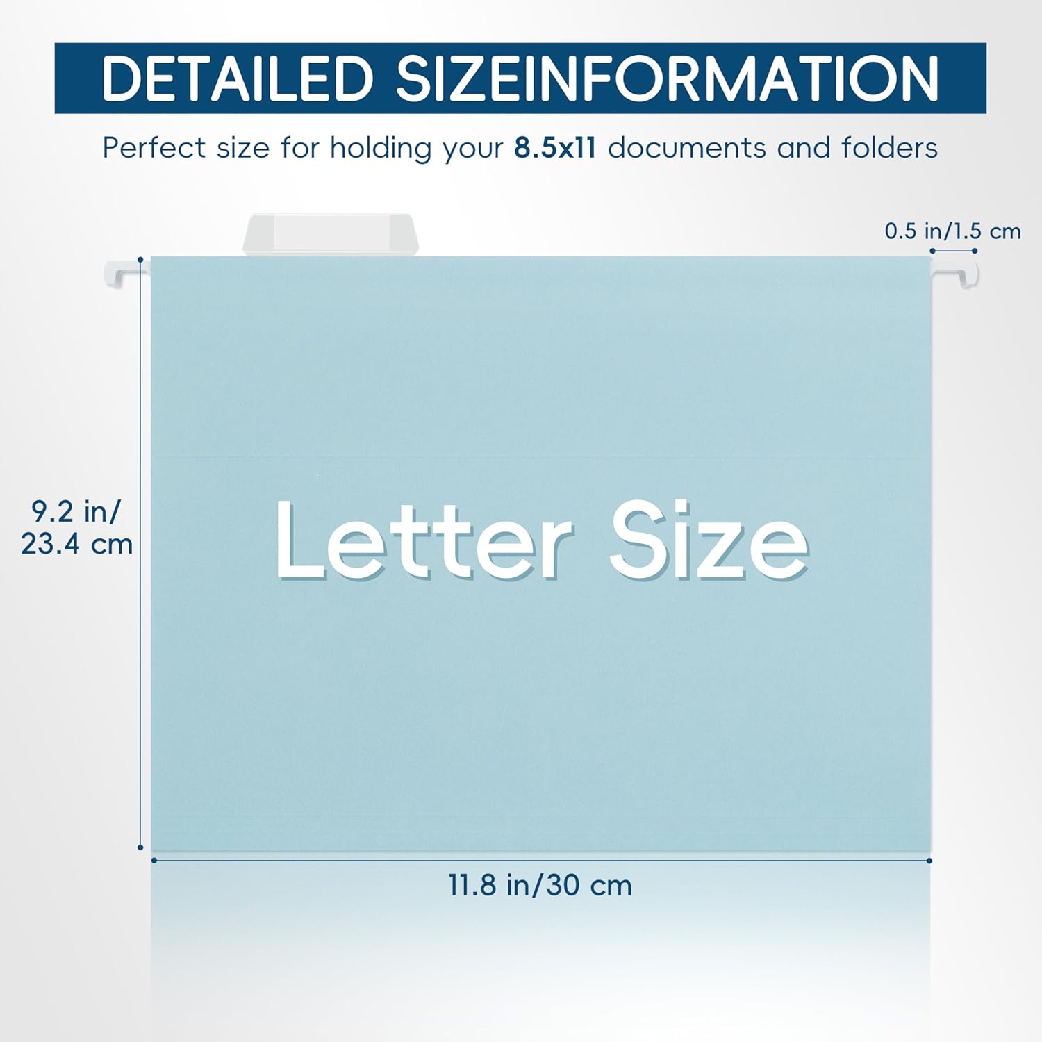 • Effective Filing Solution – These LETTER SIZE 8.5x11 hanging file folders save desktop space, enabling neat and efficient storage of files in offices or homes. Organize documents effortlessly with this 25 Pack set.