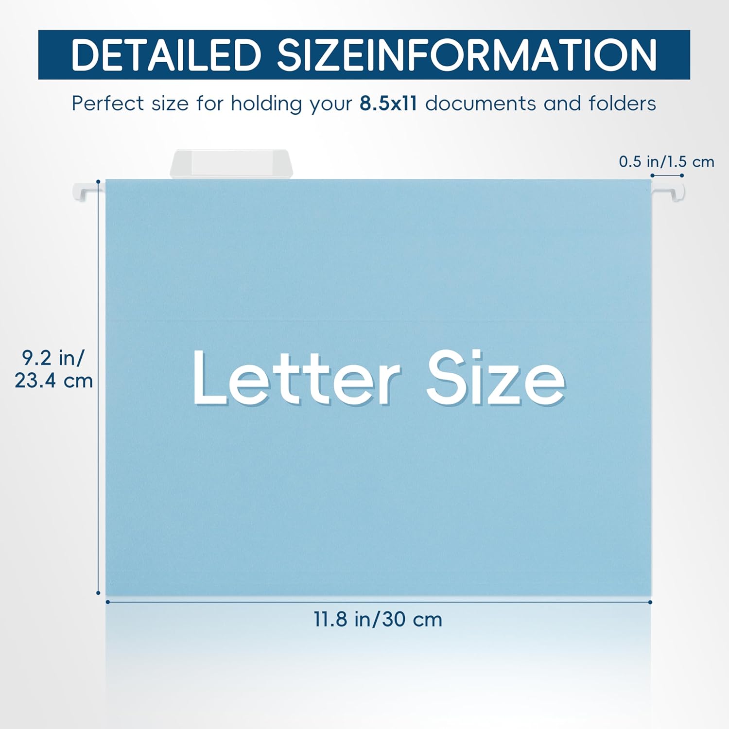 • Effective Filing Solution – These LETTER SIZE 8.5x11 hanging file folders save desktop space, enabling neat and efficient storage of files in offices or homes. Organize documents effortlessly with this 25 Pack set.