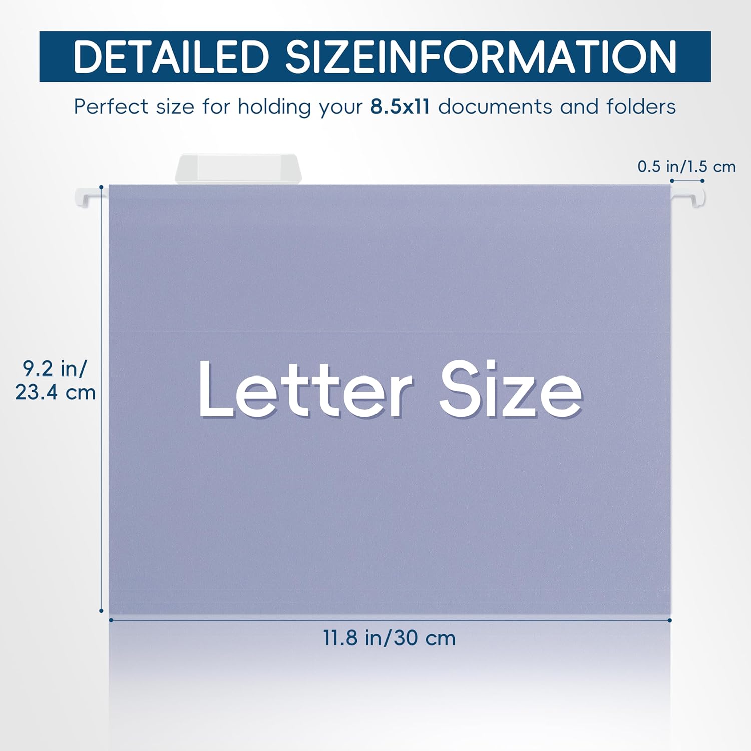 • Effective Filing Solution – These LETTER SIZE 8.5x11 hanging file folders save desktop space, enabling neat and efficient storage of files in offices or homes. Organize documents effortlessly with this 25 Pack set.