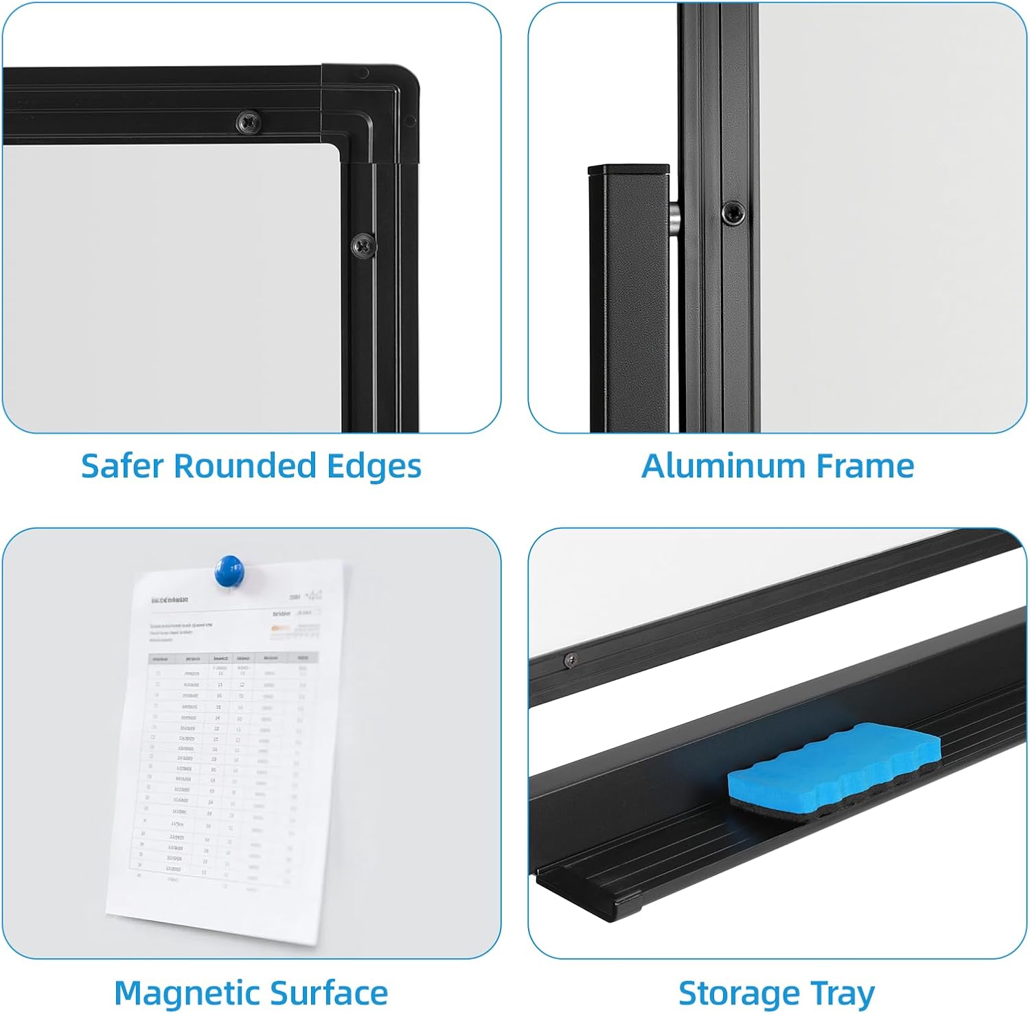 • High-quality materials, sturdy and durable: Dry erase board adopts a metal frame structure and ABS reinforced corners. The surface is also covered with rust-proof black coating. Also equipped with a removable slot for easy storage of accessories