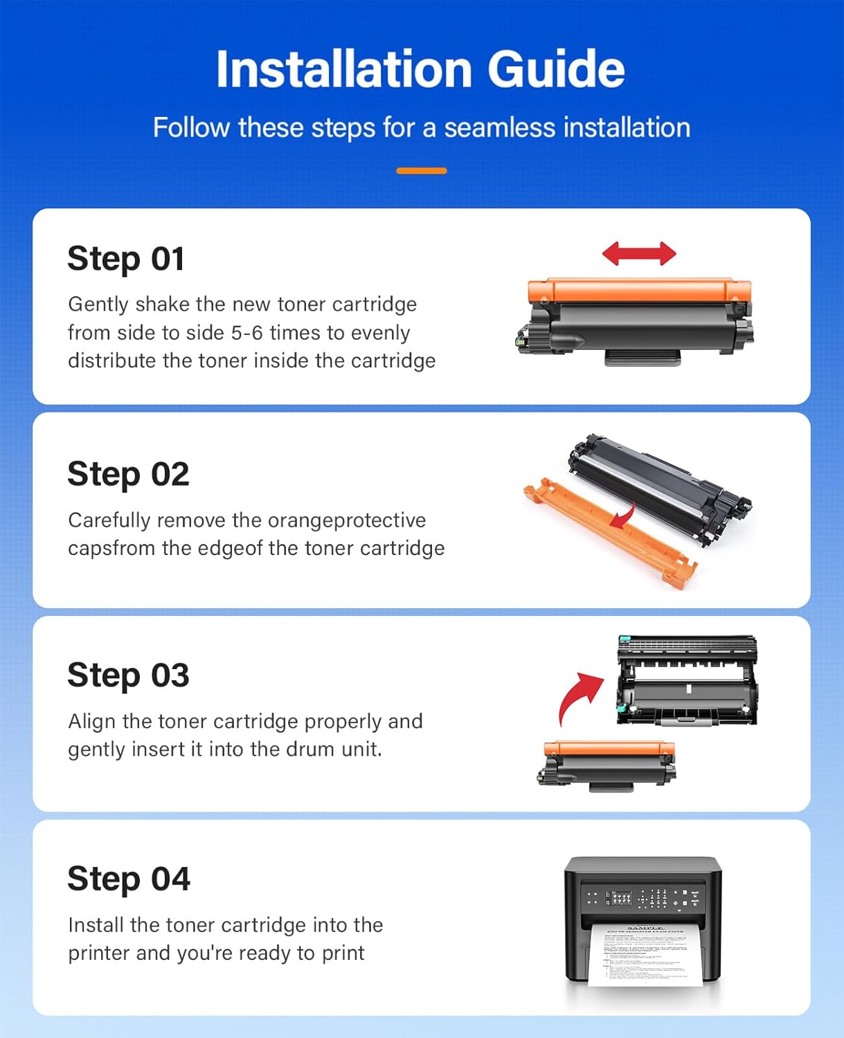 • To use with: Compatible for Brother HL-L2400D, HL-L2405W, HL-L2420DW, HL-L2460DW, HL-L2465DW, HL-L2467DW, HL-L2480DW, HL-L2865DW, HL-L2460DW XL, MFC-L2760DW, MFC-L2807DW, MFC-L2820DW, MFC-L2820DW XL, MFC-L2900DW, MFC-L2900DW XL, MFC-L2980DW, DCP-L2640DW, DCP-L2647DW Laser Printer.