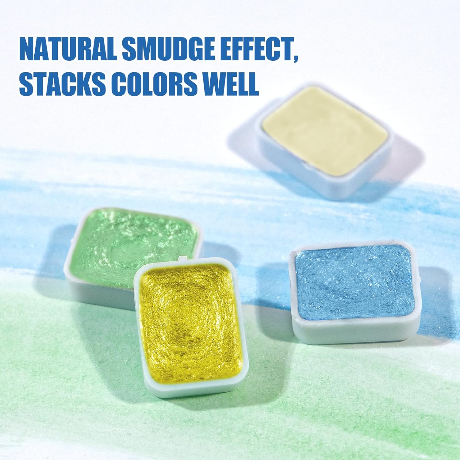 • 【Color-Blendable & Smudgeable】Professional watercolor paint set achieve a smudge effect. Water paint also allow custom mixing and blending to create various colors. Due to high pearl powder content, color vibrancy is slightly affected, but combining with regular watercolor paint sets enables an expanded color palette