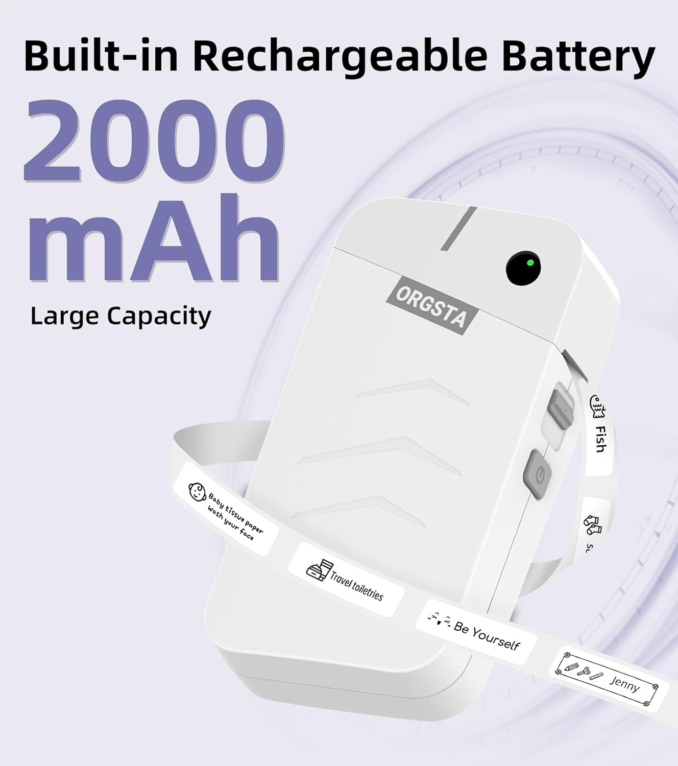 • High-Quality Printing: The ORGSTA label maker utilizes direct thermal printing technology and offers 203 DPI high-resolution printing, enjoy high-definition printing without the need for ink or toner; Laminated labels are clear, waterproof, oil-proof, scratch-resistant, and easy to tear, leaving no residue after removal