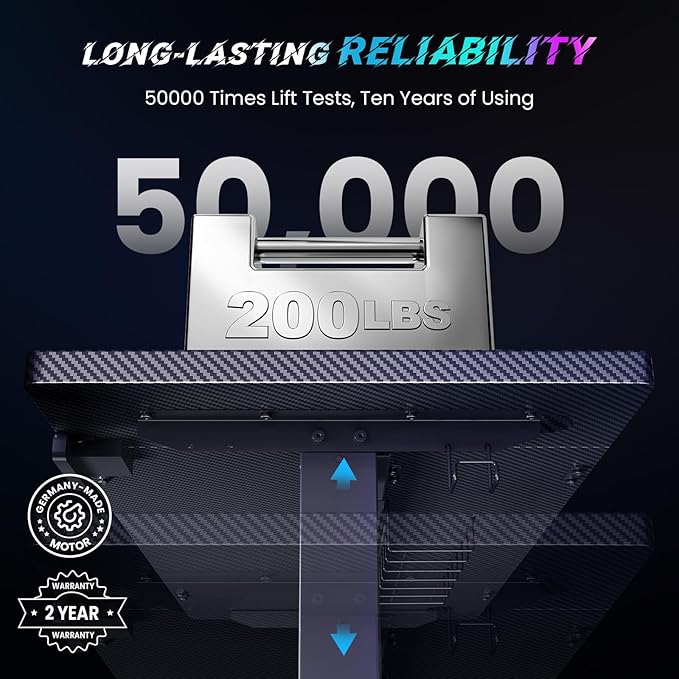 • Reliable&Durable : This electric standing desk lifting power enough to fully loaded office and game equipment up to 200lbs. 50000 times lift tests for years of using.