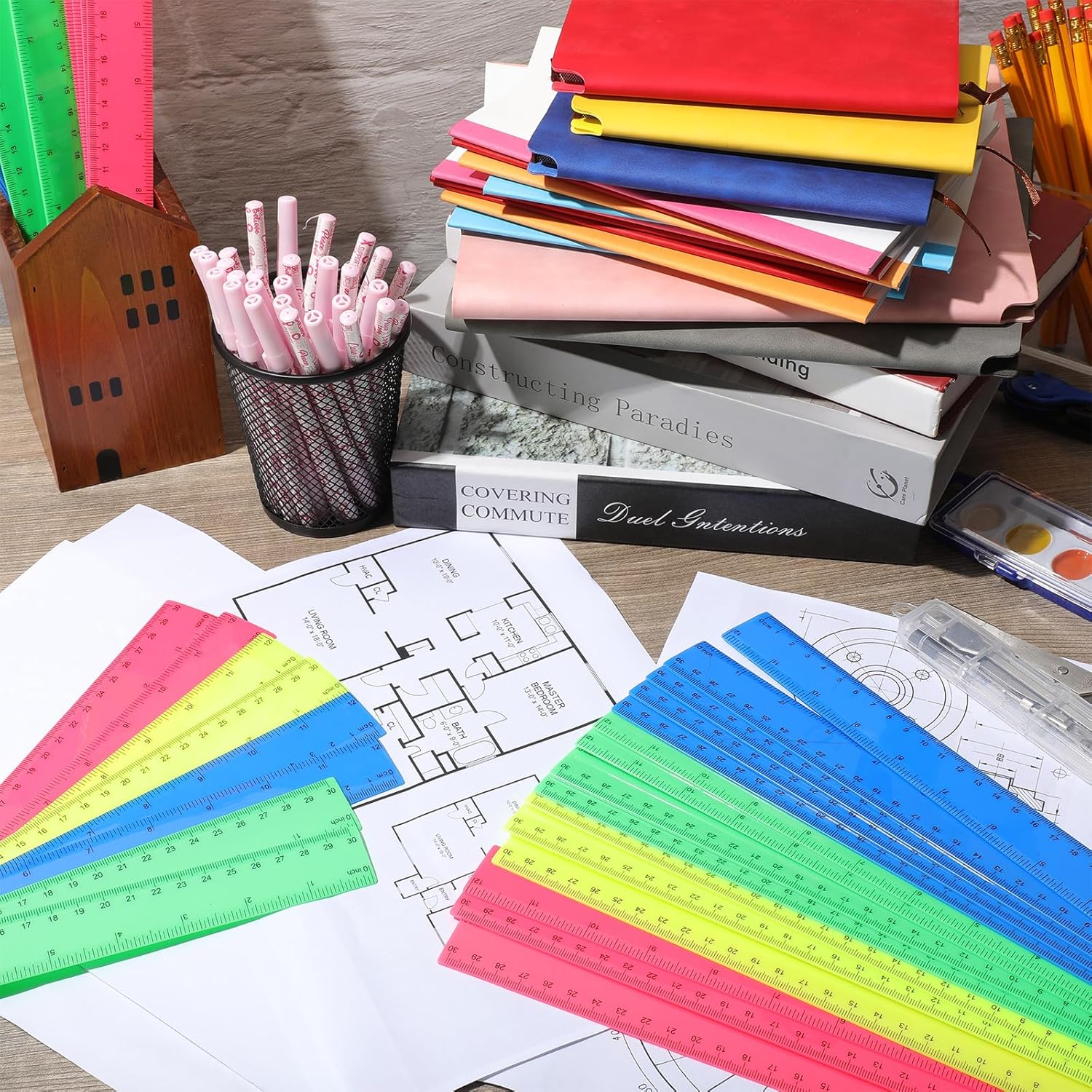 • Meet Your Needs: the package contains 50 12-inch rulers, including 12 red, 14 blue, 12 green and 12 yellow; Sufficient quantity and complete combination to meet your daily use, replacement and sharing needs