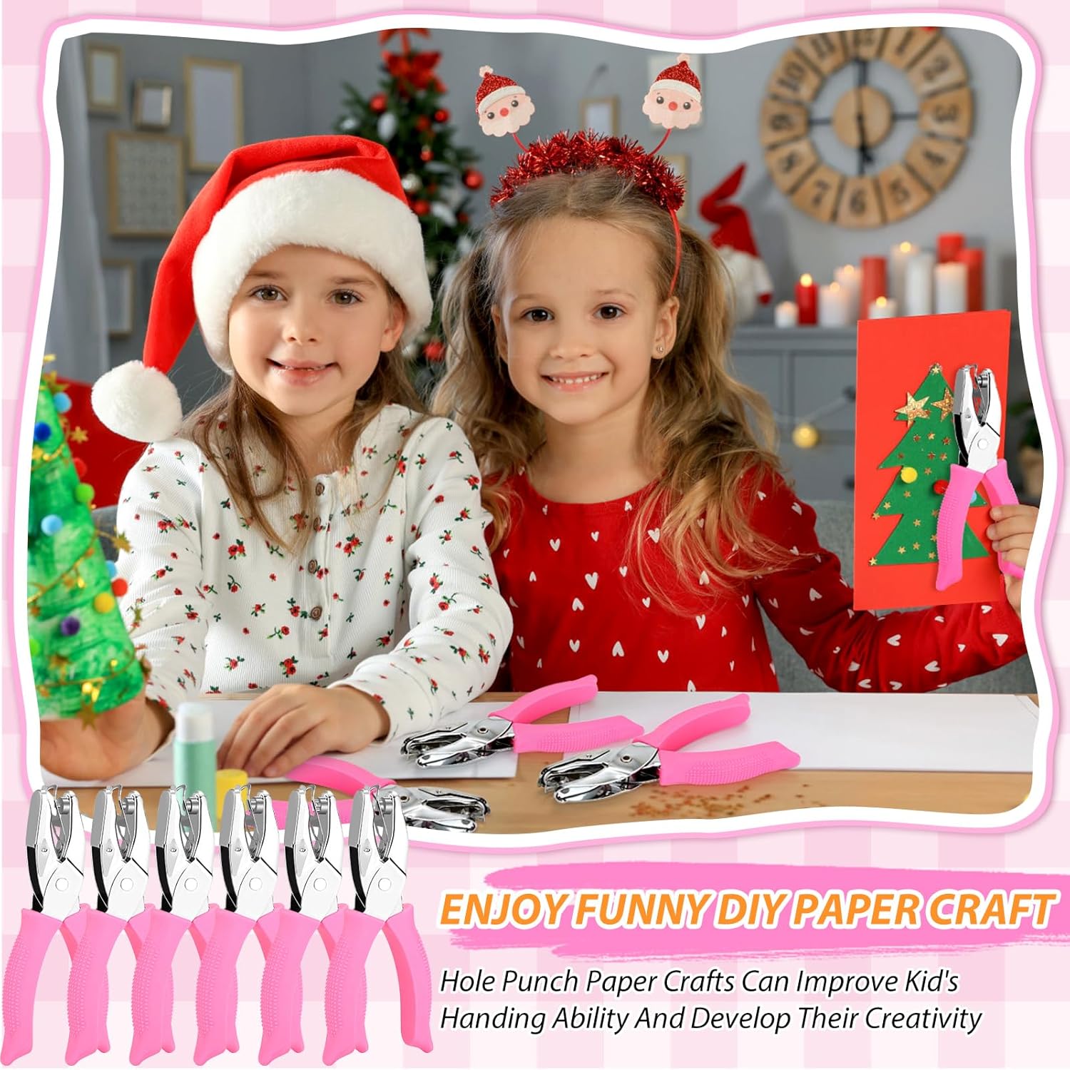 6 Pcs Hole Punch Set for Crafts - 1/16" 1/8" 1/4" Shapes (Circle, Heart, Star, Triangle) with Soft-Grip Handles | Paper Puncher for Binders, Scrapbooking, School, Card Making