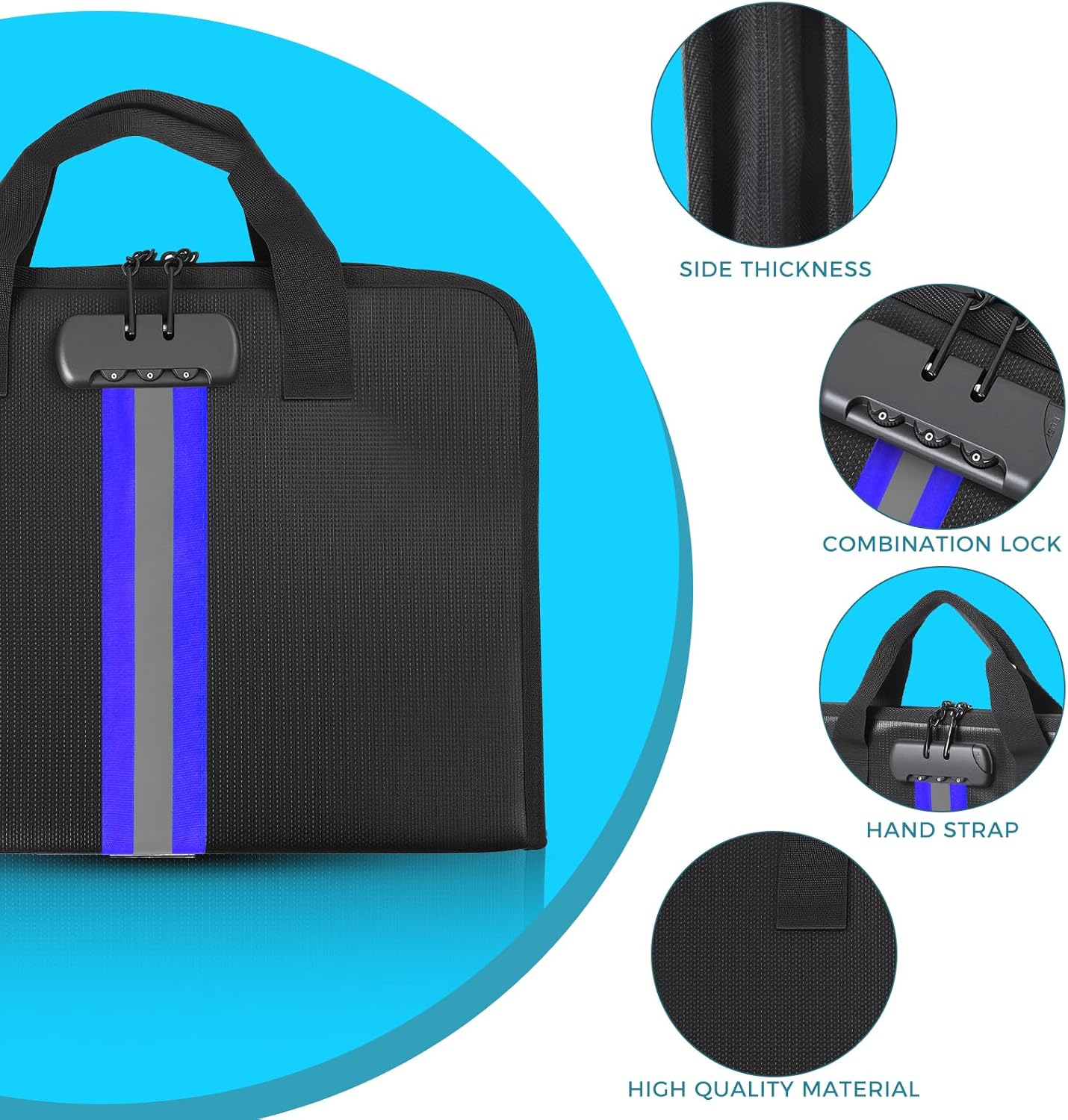 • High-Quality Materials:Fireproof expanding file organizer made of 3-layered silicone-coated fiberglass, withstands extreme temperatures up to 2500℉ has passed SGS testing(UL94 certified). Protects important documents from fire, flood, and wet weather conditions