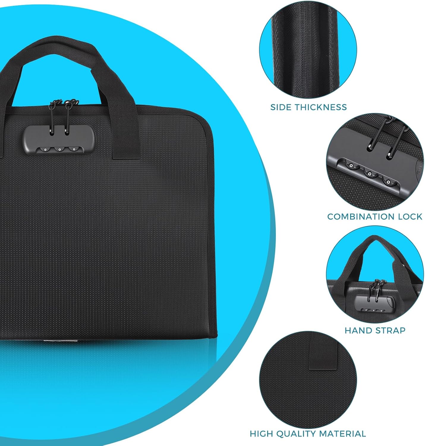 • High-Quality Materials:Fireproof expanding file organizer made of 3-layered silicone-coated fiberglass, withstands extreme temperatures up to 2500℉ has passed SGS testing(UL94 certified). Protects important documents from fire, flood, and wet weather conditions