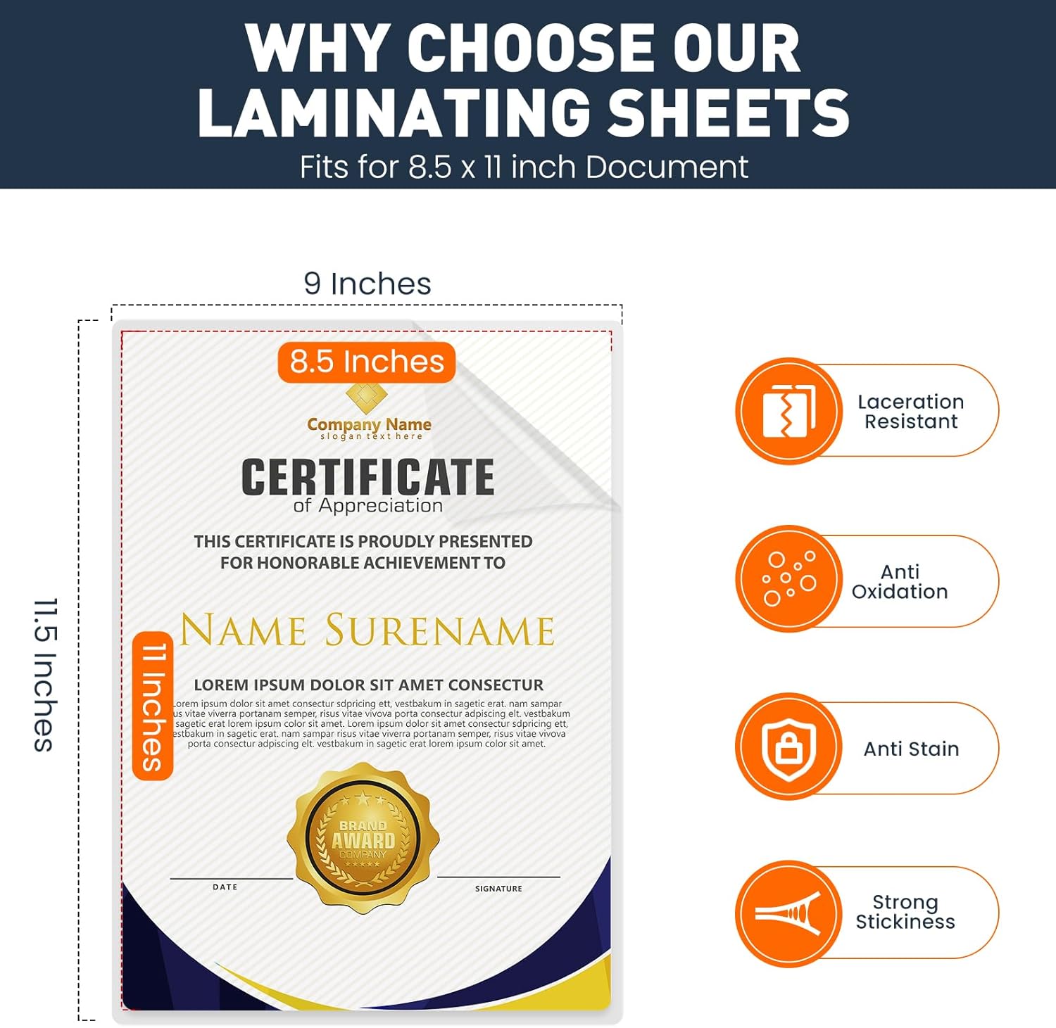 • Laminating Pouches Dimensions: 330 PACK , 3 mil thickness ,9" x 11.5" laminating sheets size, fits for 8.5 x 11 inch document