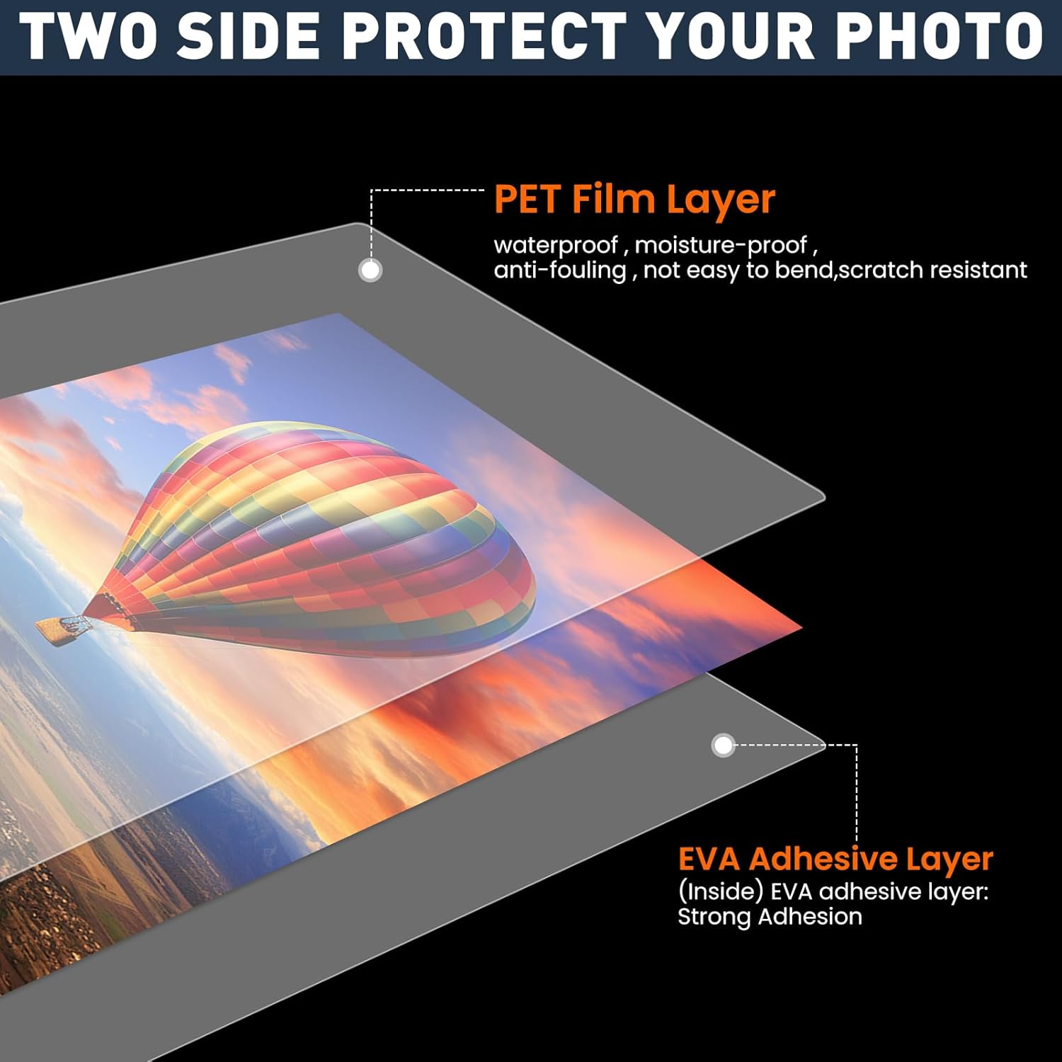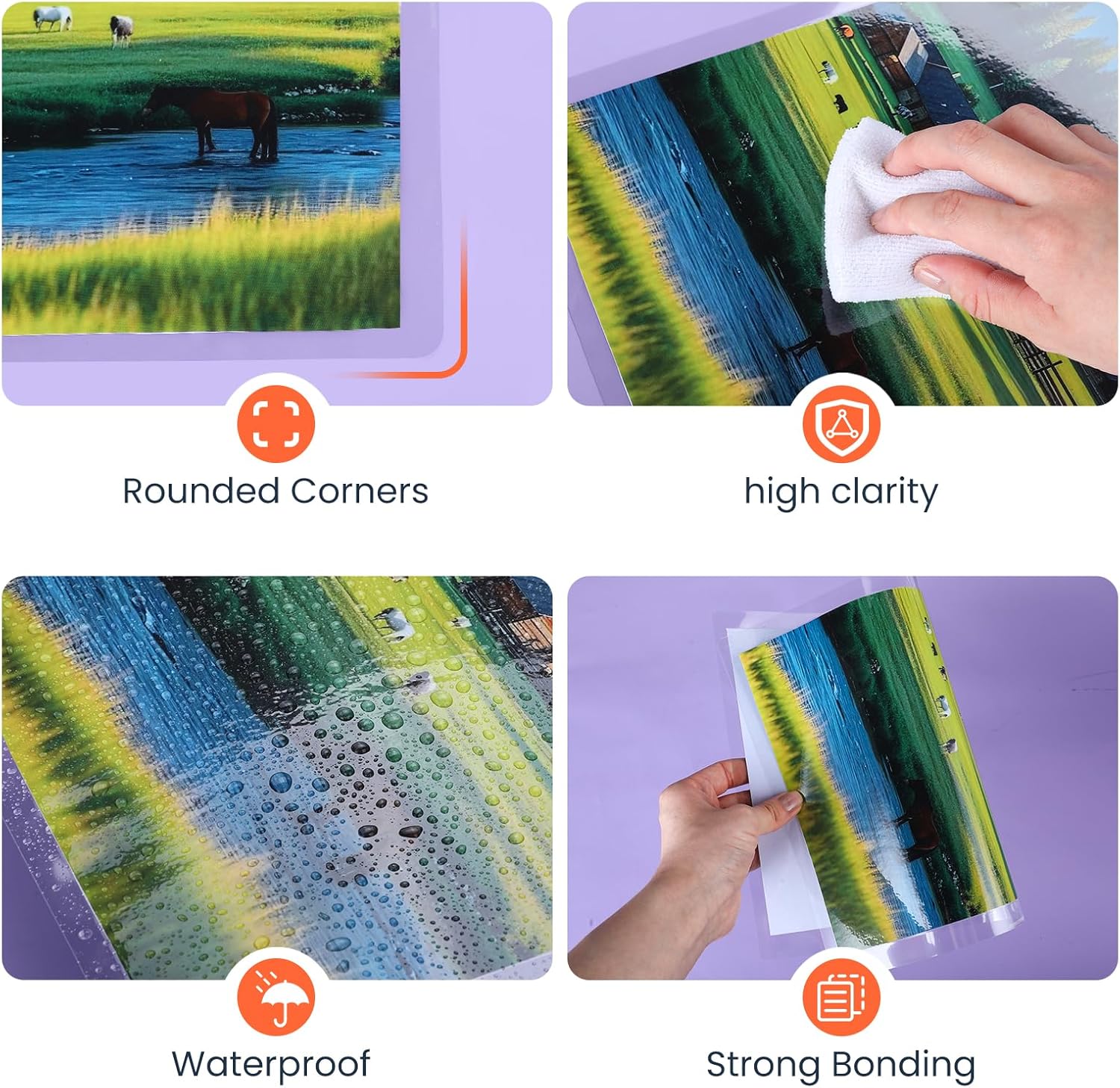 • Application:Perfect for protecting certificates,signs,photos,awards,calendars,kids artworks.It can seal and protect your documents it can be used in classroom, home and office.Compatible with all thermal laminator machine brands