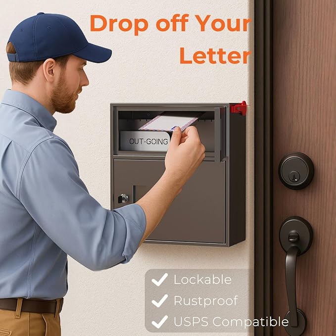 • USPS-Compatible with Outgoing Mail Flag: Designed to fit standard USPS letter-size mail. The built-in red flag clearly signals outgoing items for your postal carrier—no need for a separate mailbox unit.